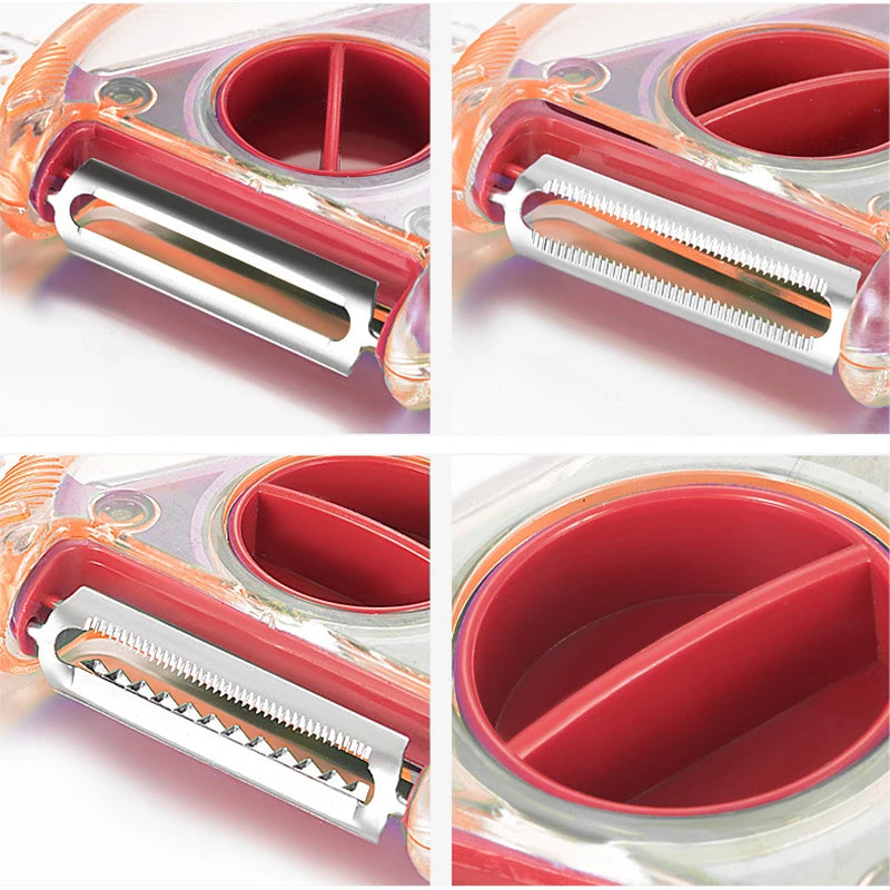 ThreeInOne Kitchen Peeler Grater Carrot Cutter Fruit Tool combines three essential kitchen tasks in one compact unit, letting you peel, grate, and slice with ease.