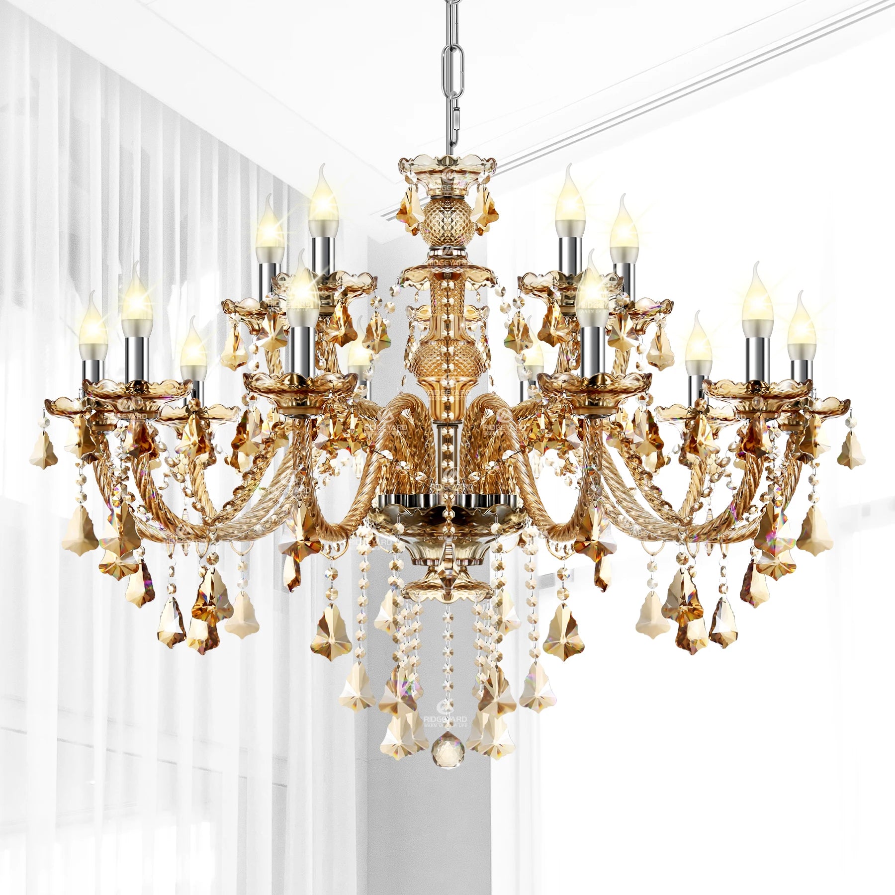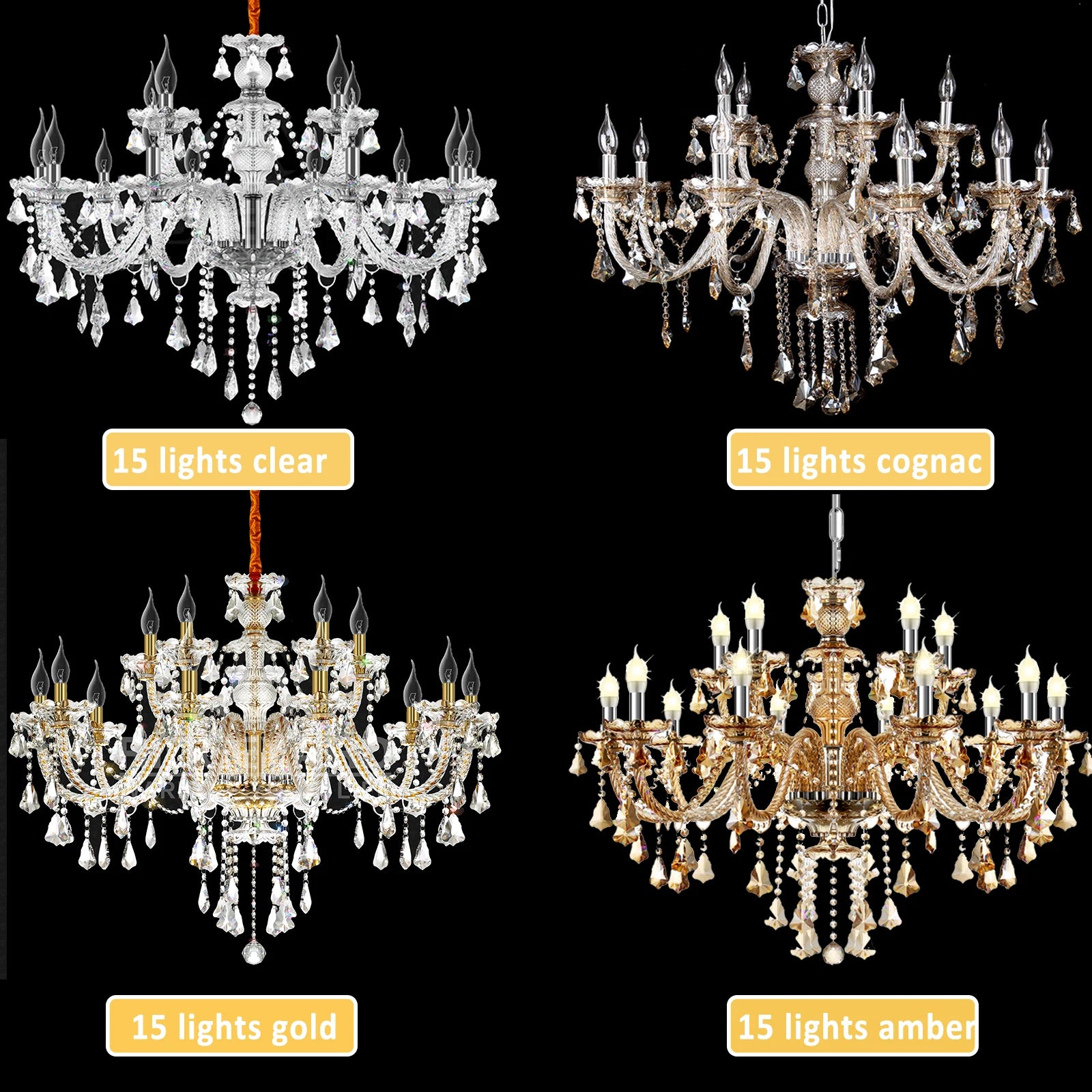 15 Arms Crystal Chandelier Pendant Lighting E14 Modern K9 Glass Fixture for Bedroom Living Room Corridor Hall