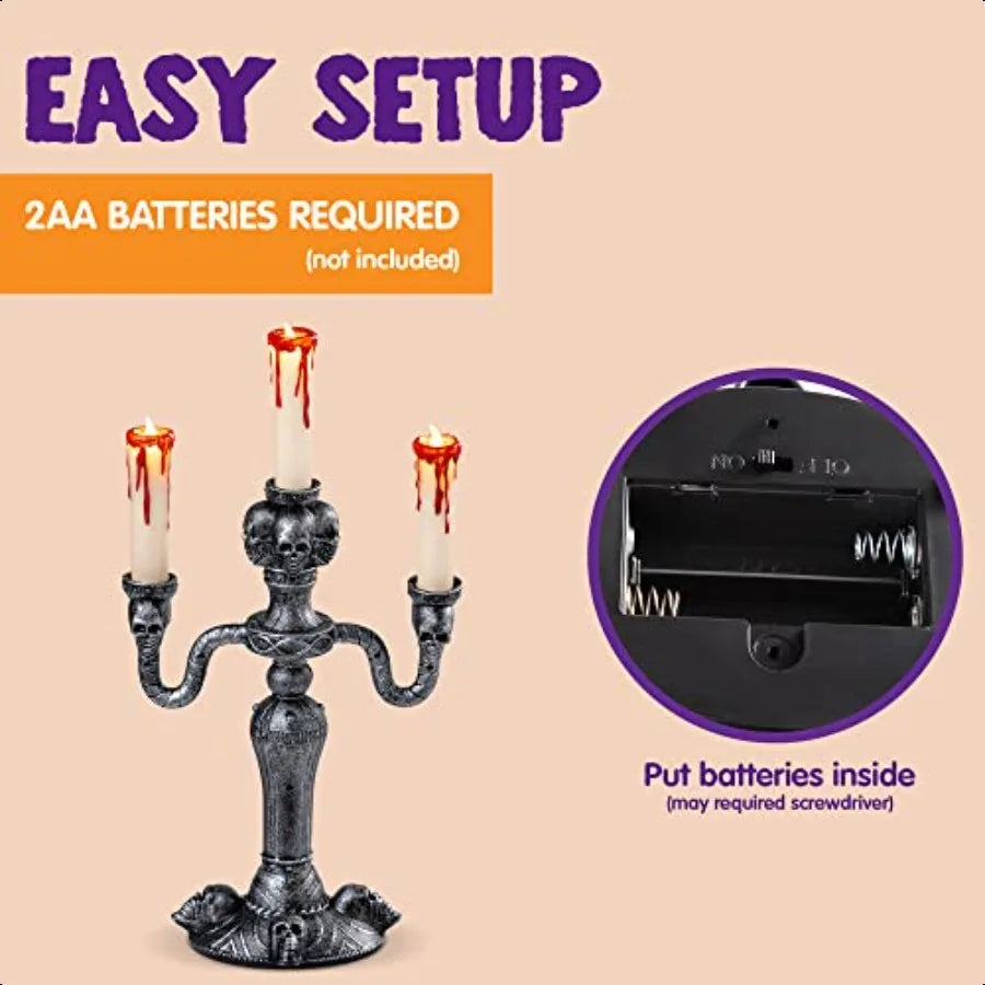 2 Pcs Skull Candelabra Halloween Decor LED Candle Holder