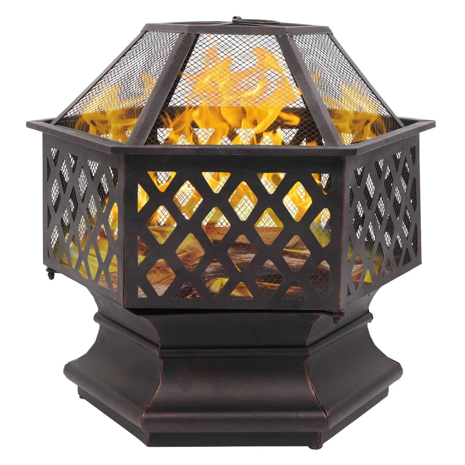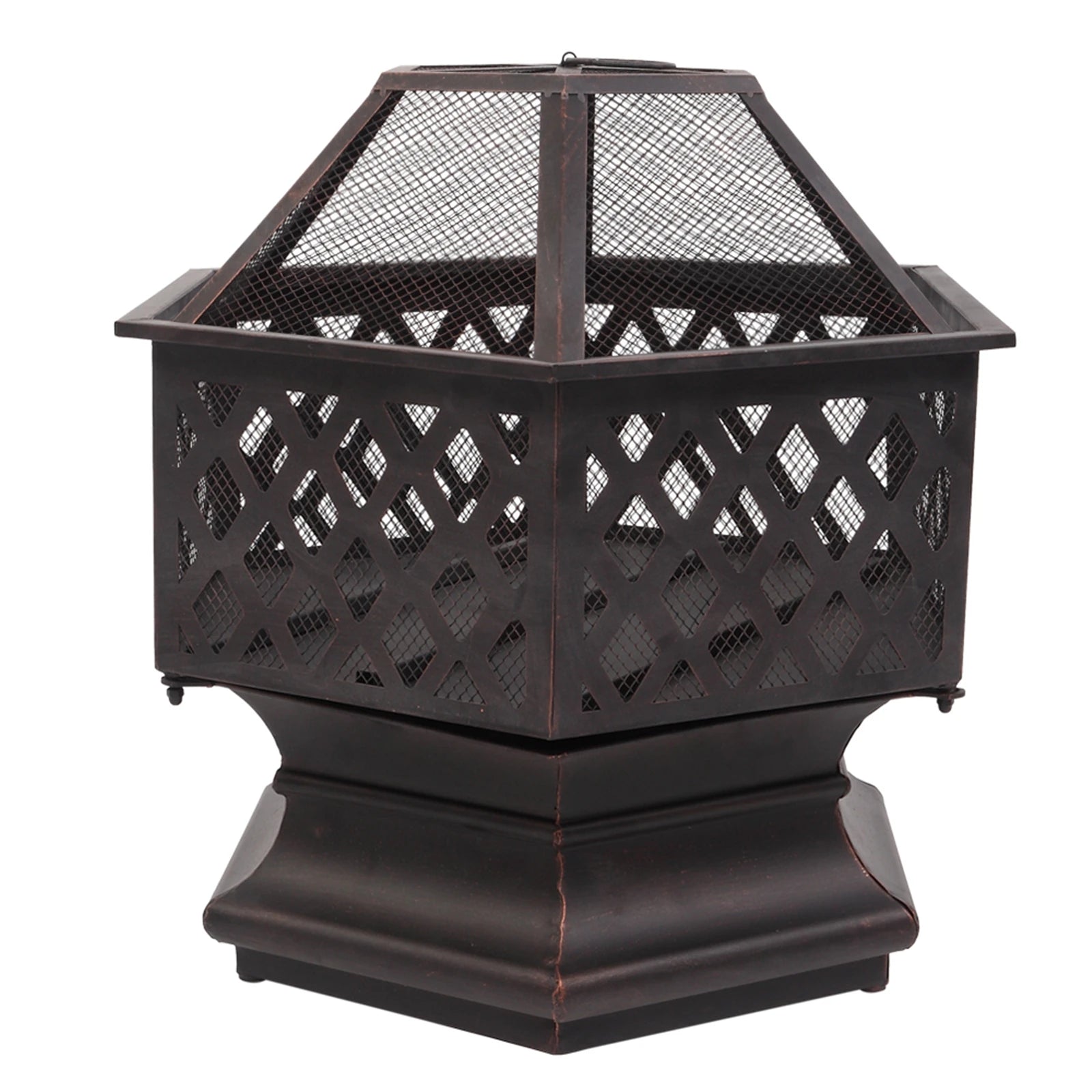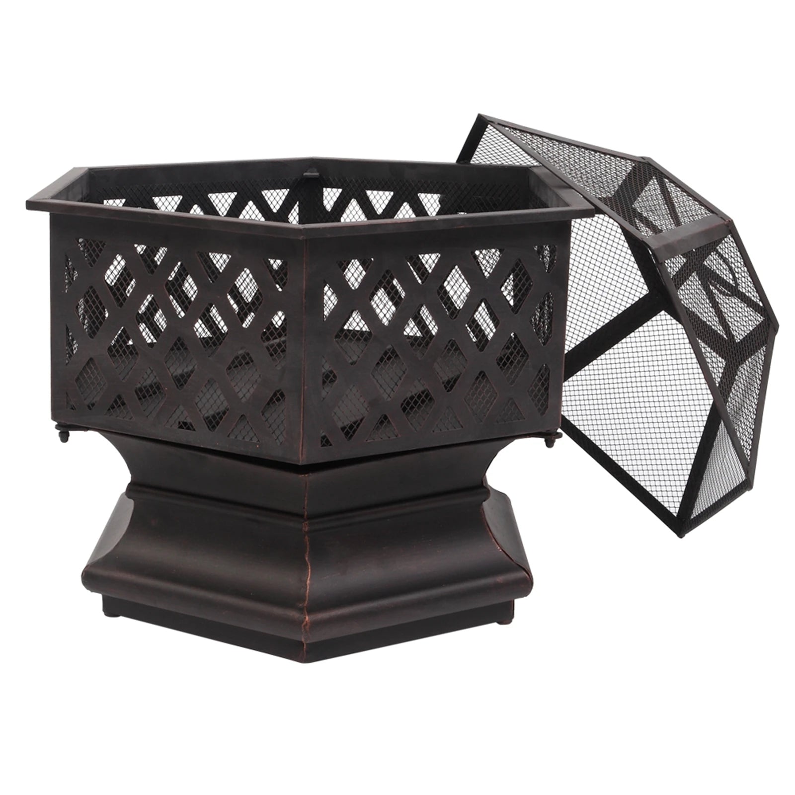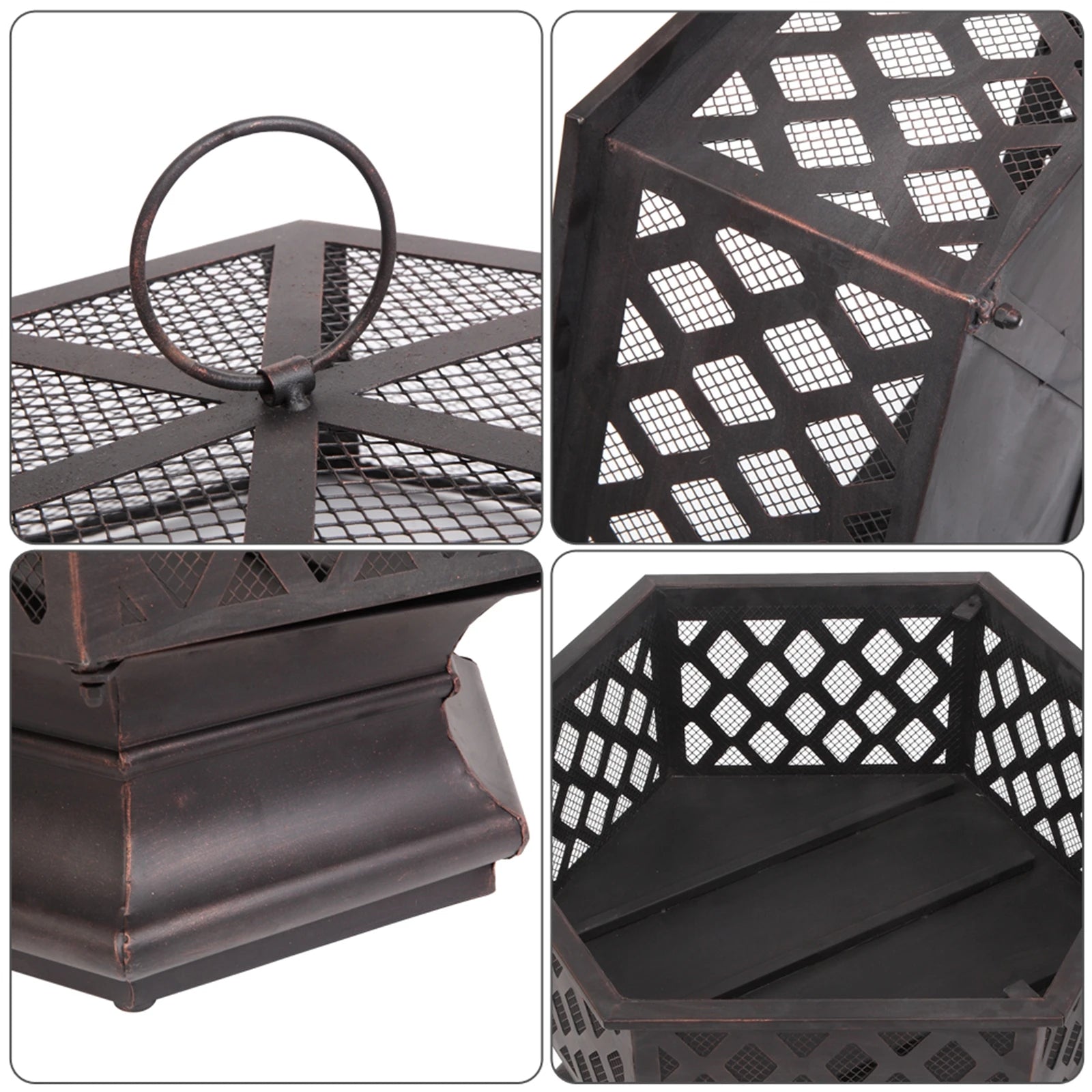 22 Inch Hexagonal Iron Brazier Wood Burning Fire Pit