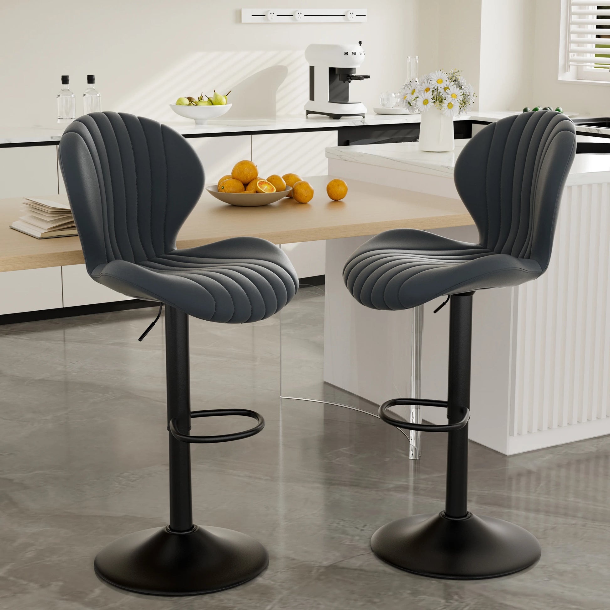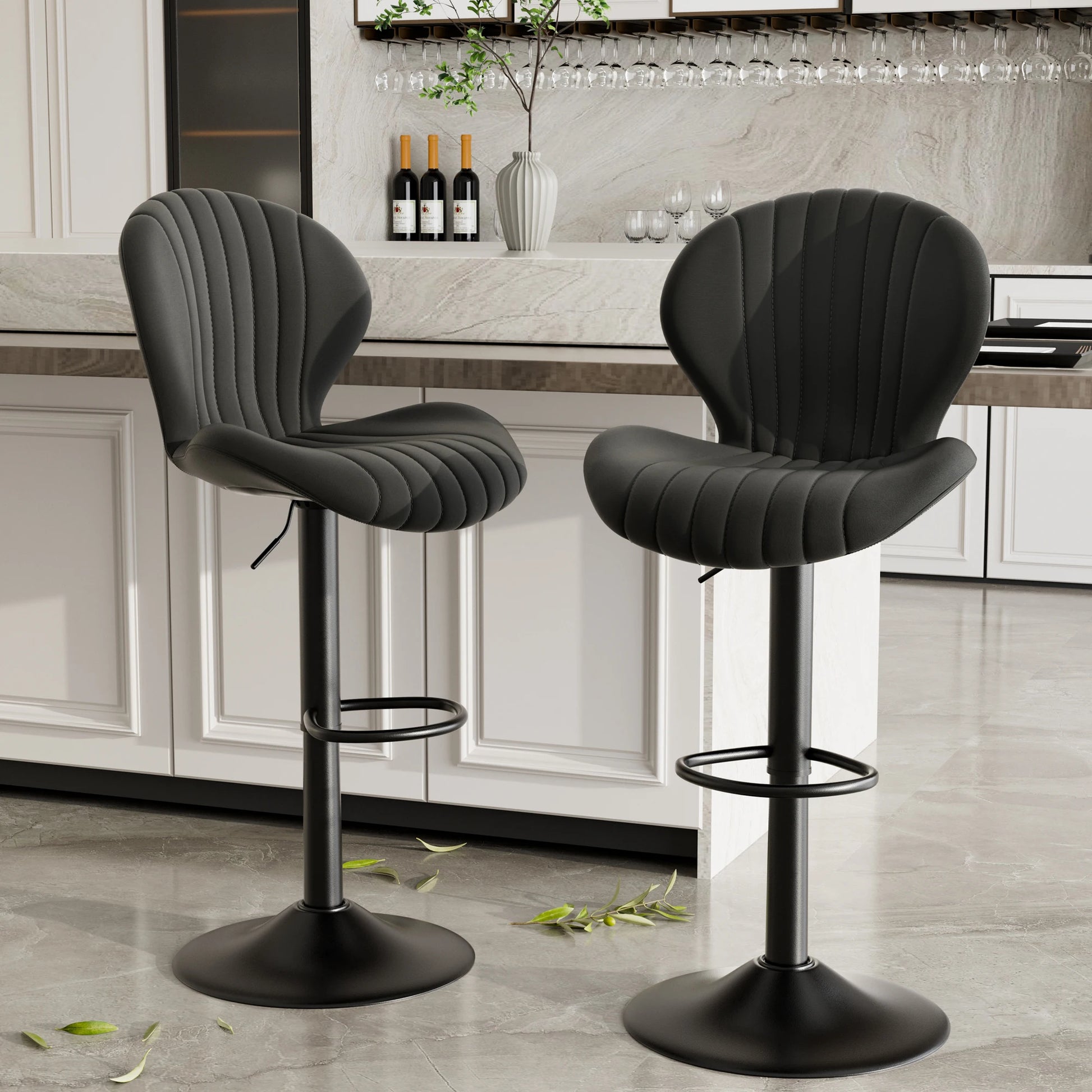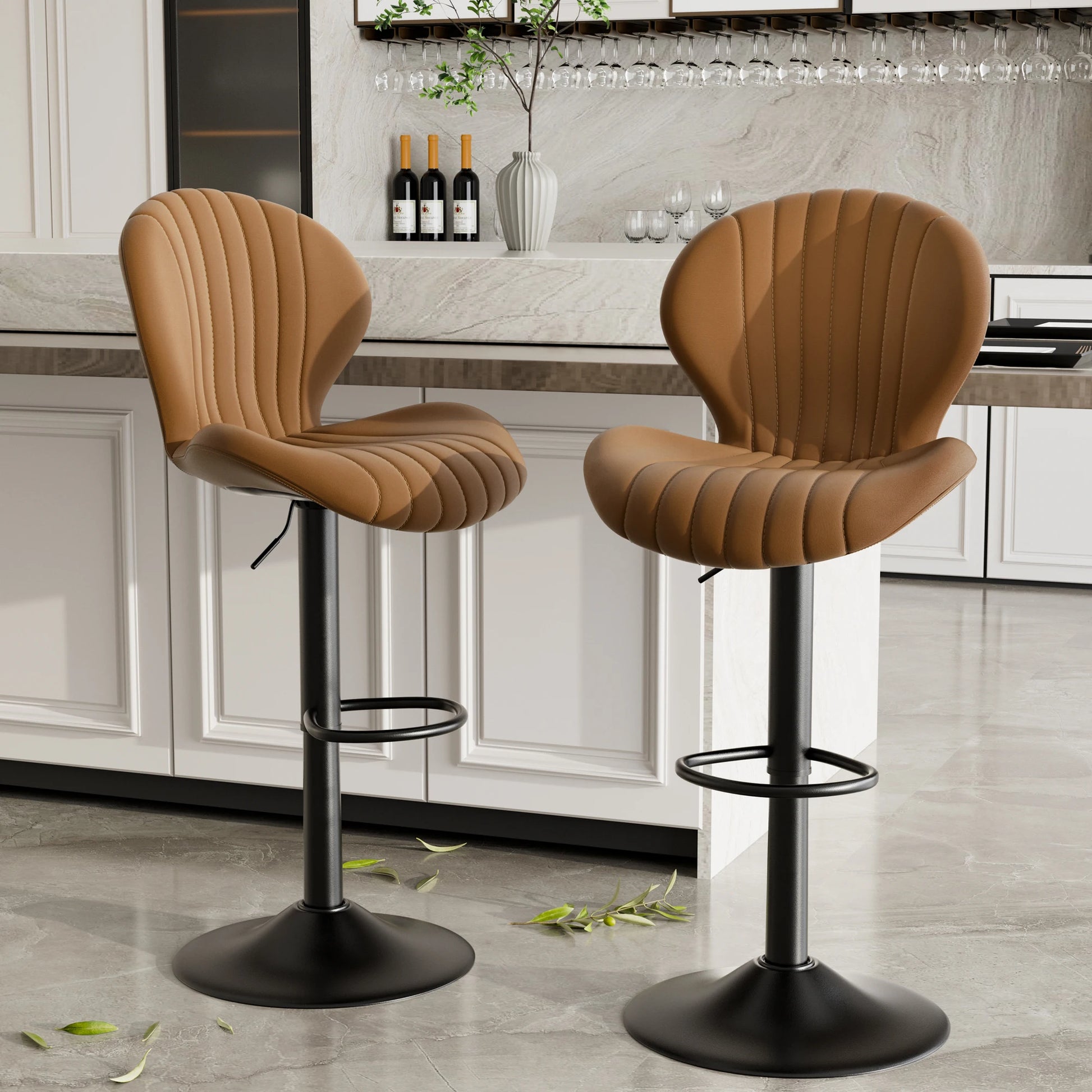 2 Pack Bar Chairs 360 Rotating Leather Backrest Dining Room