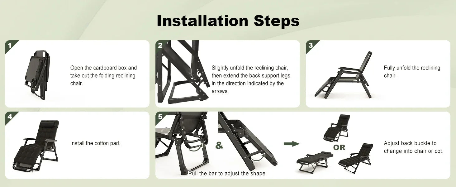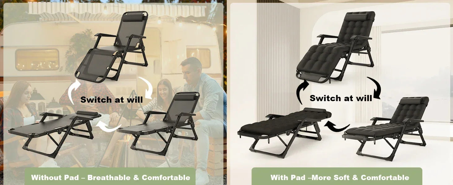 3 In 1 Oversized Folding Camping Cot 29 Inch Adjustable XL Patio Chaise Lounge Chair Sleeping Cots for Adults