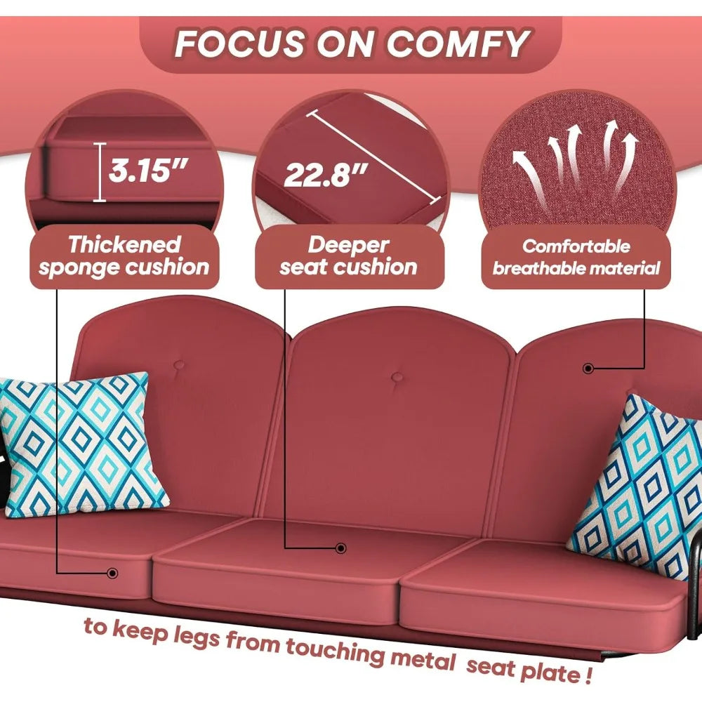 - 2-in-1 Convertible Design: Easily converts between a three-person swing and a reclining swing bed for naps or lounging.
