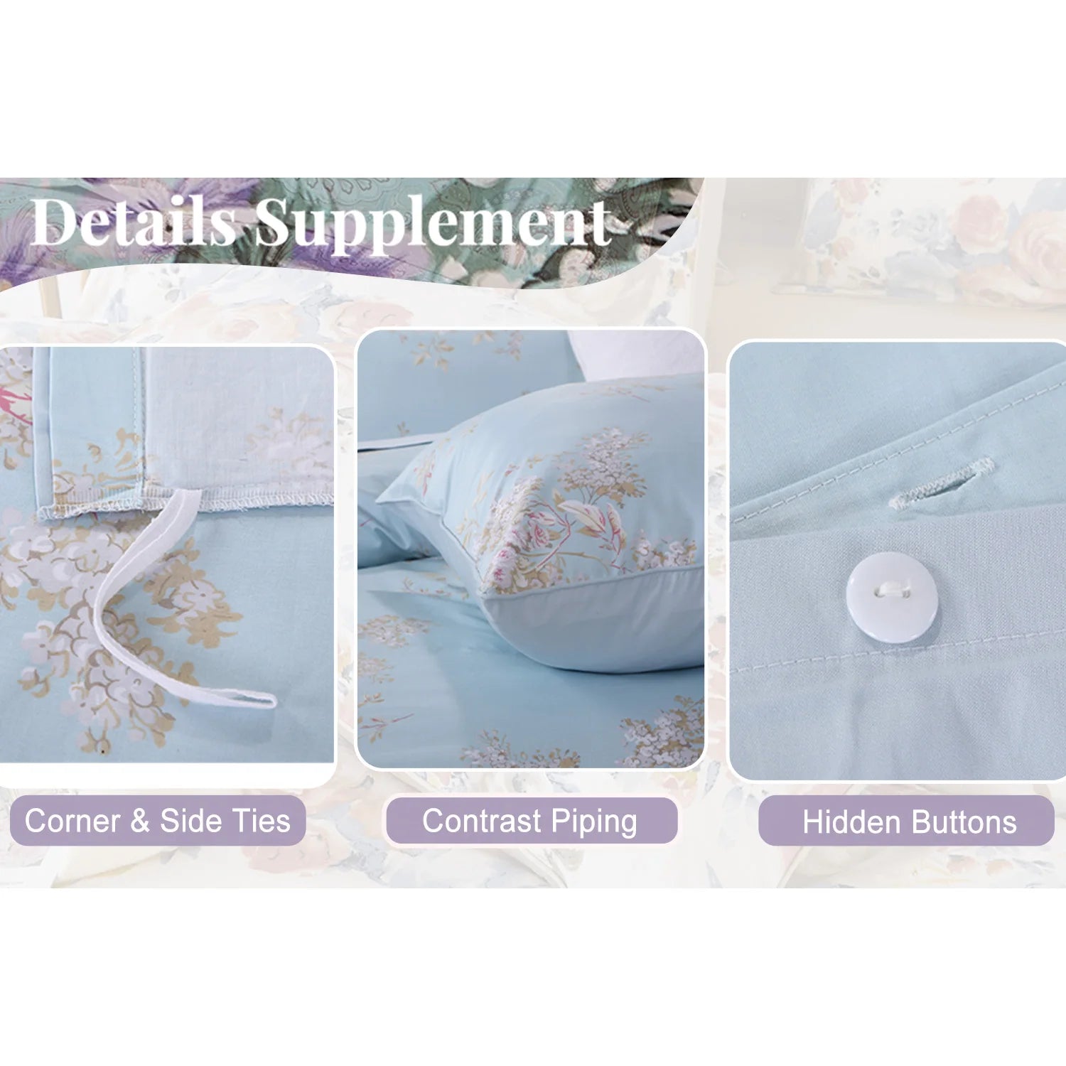 600TC Egyptian Cotton Duvet Cover Set Vintage Blue Tassel