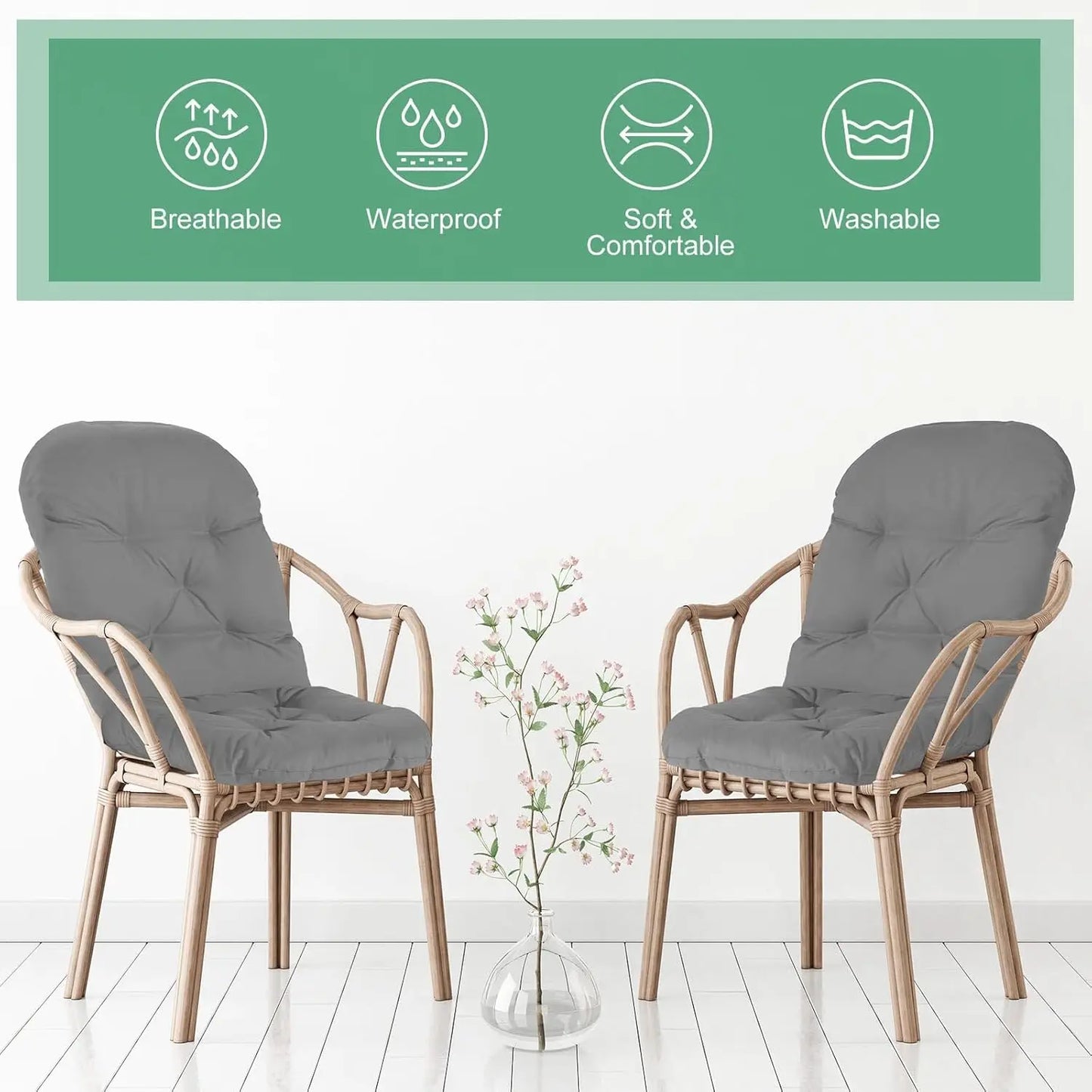 Transform your outdoor seating experience with the 4 Set Outdoor High Back Chair Cushions from Comfy Cottage Shop. Designed for comfort and durability, these cushions measure 47 x 20 inches and are perfect for rocking chairs, providing a cozy and inviting touch to your patio, garden, or balcony.