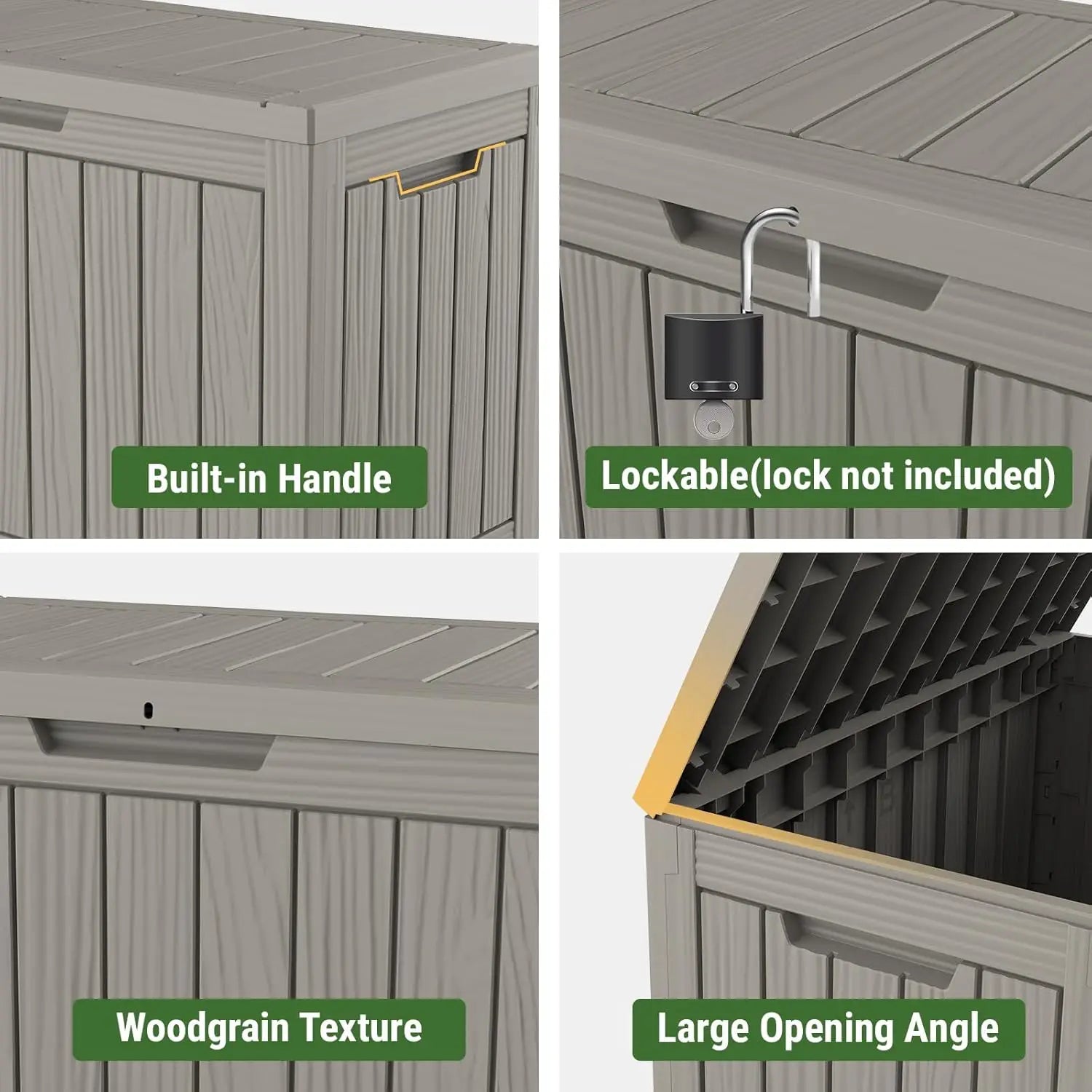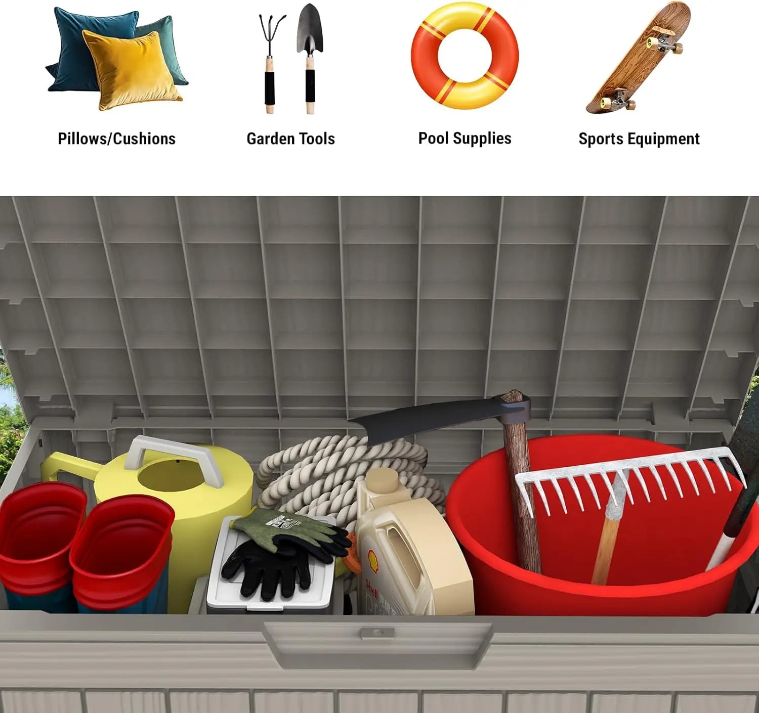 With a generous 45-gallon capacity, it offers flexible storage without sacrificing outdoor aesthetics. Its waterproof design protects contents from rain, humidity, and sun exposure, helping you extend the life of seasonal items.