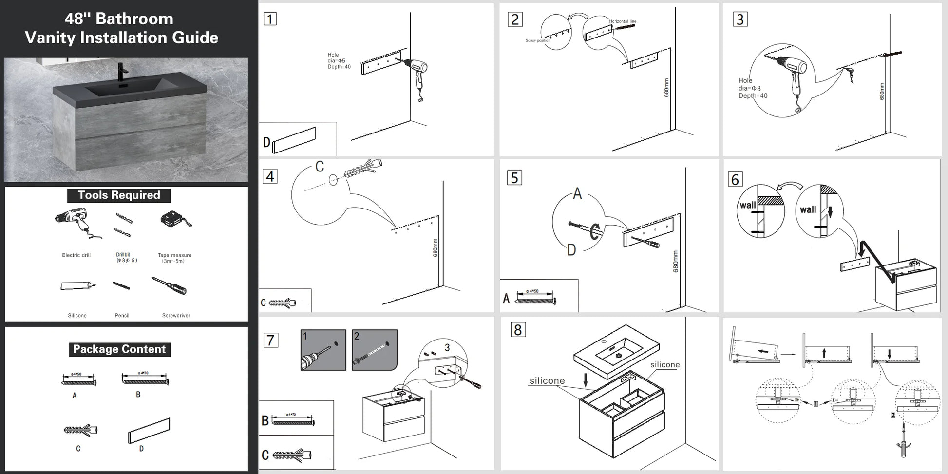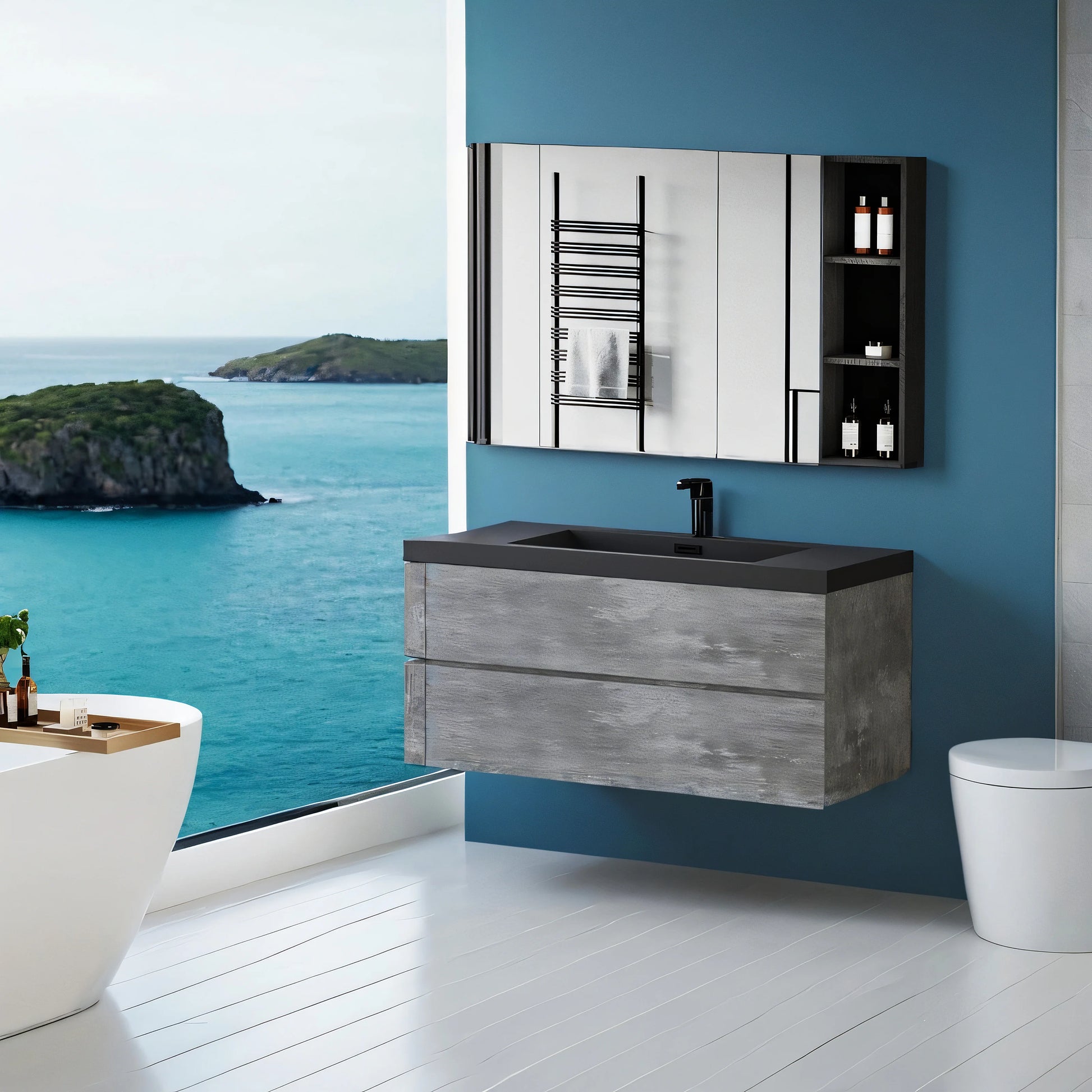 48 Inch Floating Bathroom Vanity With Sink Black Quartz Top