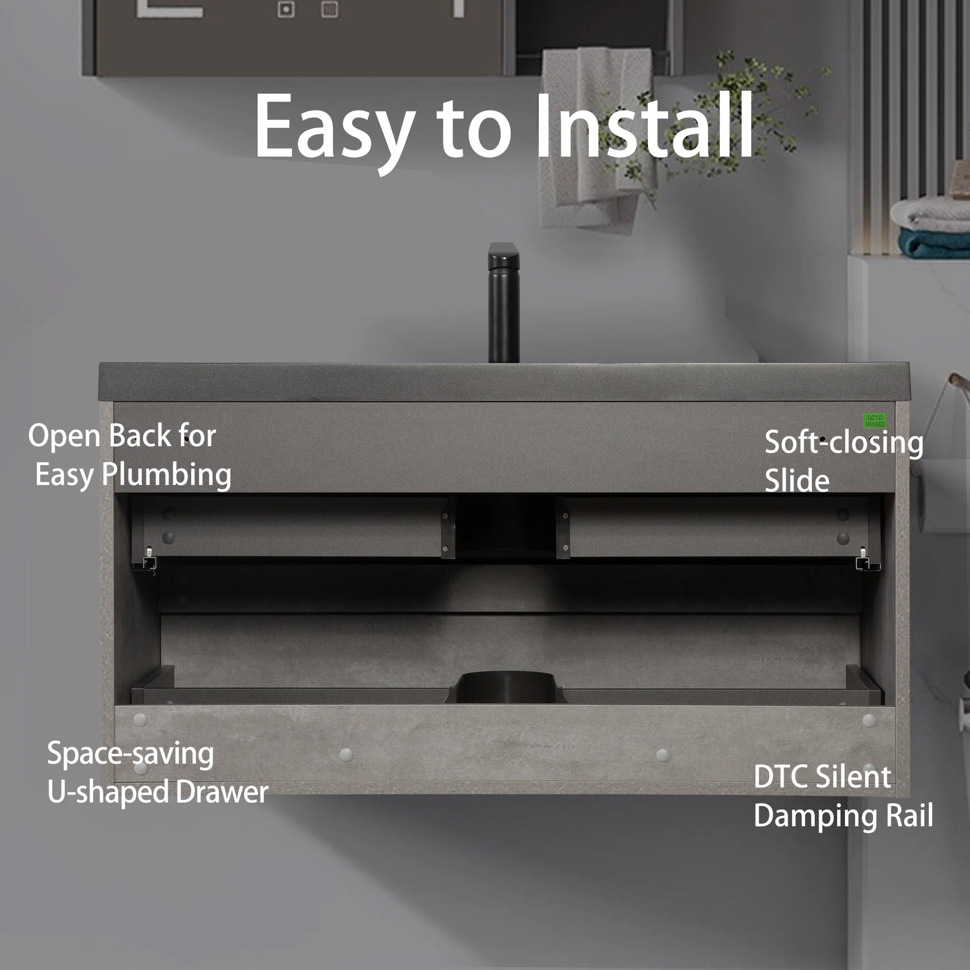 - Space-Saving Solution wall-mounted design frees floor space for a more open bathroom vibe.