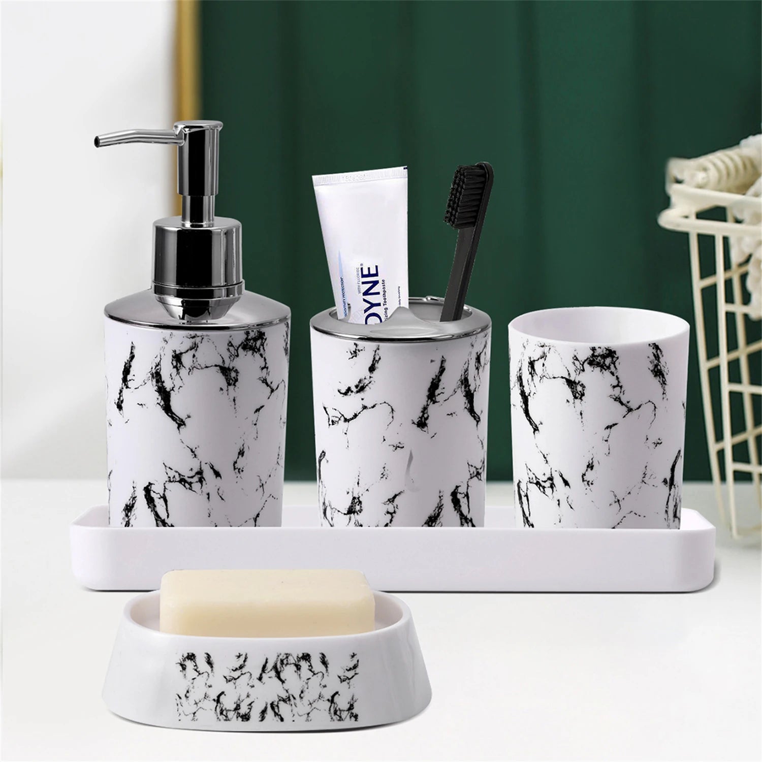 White Black Marble Bathroom Set With Lotion Bottle Soap Dish
