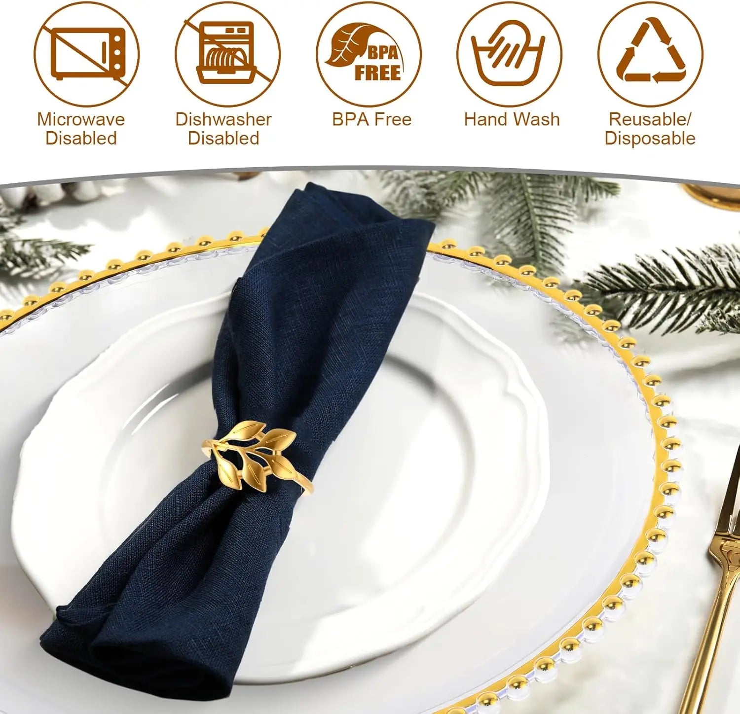 Elevate your dining experience with our 50 Set Clear Charger Plates Bulk, featuring stunning 13 Inch Beaded Plastic Charger Plates that come with exquisite napkin rings. Perfect for weddings, parties, and Thanksgiving gatherings, these charger plates blend sophisticated style with practicality.