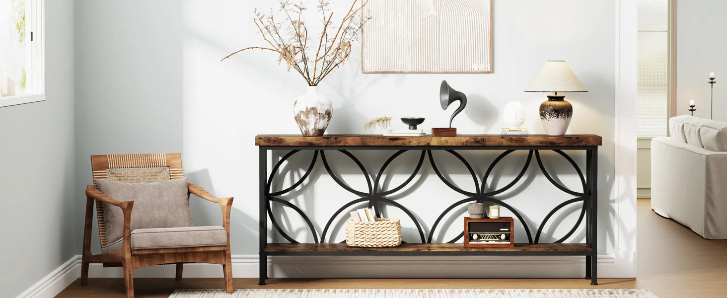 Meet the Industrial Narrow Sofa Table With Storage For Entryway — a compact, versatile console that blends rugged industrial styling with practical organization for busy homes.