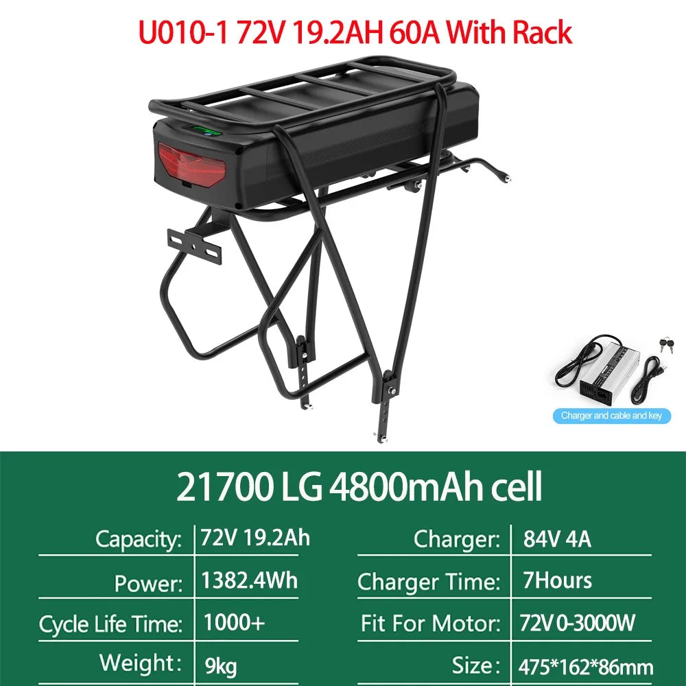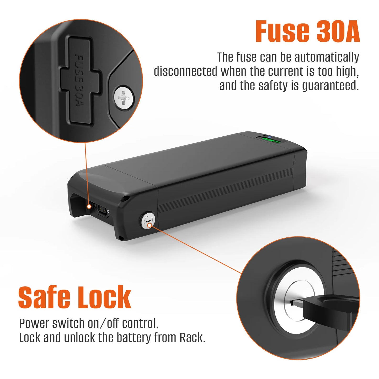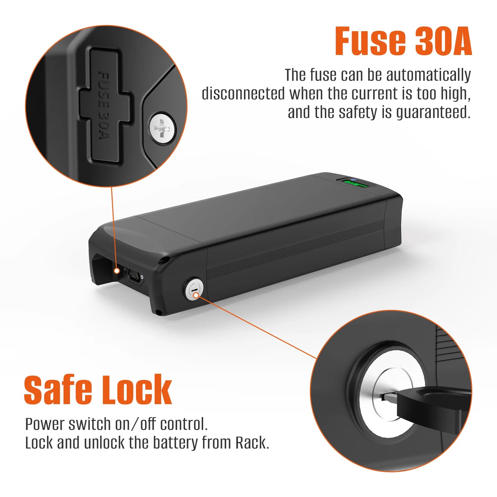 48V Rear Rack Ebike Battery 21700 Lithium Pack Luggage Rack