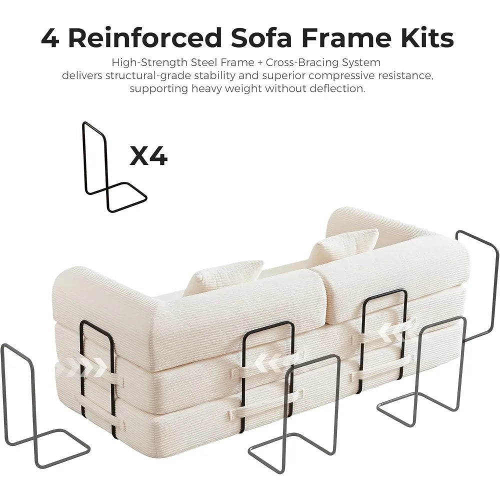 Introducing the DAFIFY Corduroy 79 Inch Modular Sofa Bed With Fixed Frame, a versatile centerpiece crafted for modern living spaces. Offered by Comfy Cottage Shop, this white corduroy sofa bed combines clean lines with a sturdy fixed frame for lasting comfort and style.