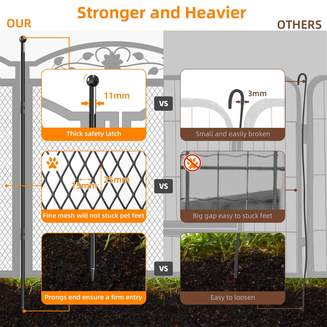 Meet the 8 Panels Heavy Duty Dog Playpen Outdoor Indoor Fence — the versatile solution for a safe, contained space for dogs of all sizes. Built with rugged iron panels, this playpen delivers lasting durability whether you’re indoors or outdoors. The eight-panel design creates a spacious enclosure that can be arranged to fit your space, from a compact square to a wide rectangle, giving your pet freedom with dependable boundaries.