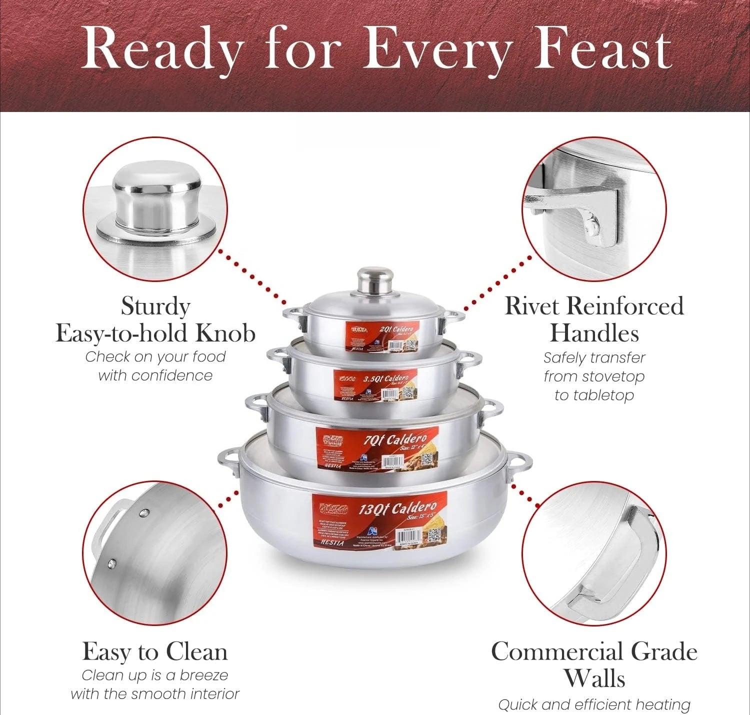 Whether you're an experienced chef or just starting, this versatile Dutch oven cookware set will elevate your cooking game. Choose the 8-Piece Aluminum Caldero Set for unmatched quality and performance. Make every meal a masterpiece!
