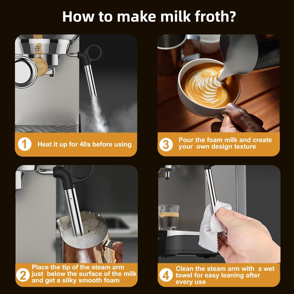 - Professional 20-Bar Steam Pressure: Ensures optimal flavor extraction and a rich crema.