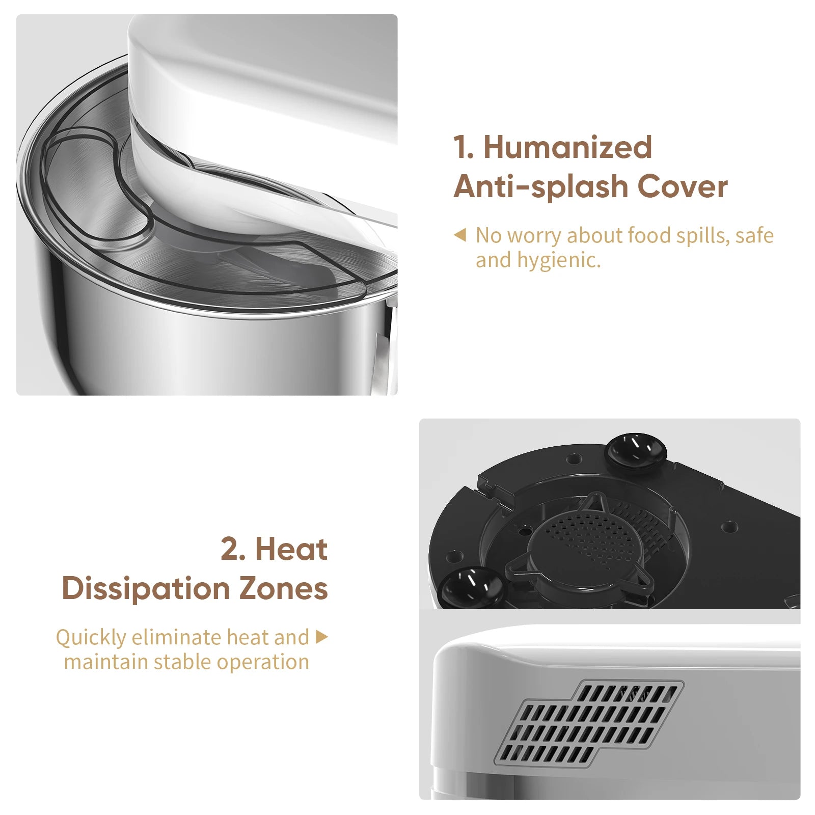 - Generous 5L Mixing Bowl: Perfect for large batches of dough, batter, or whipped cream.