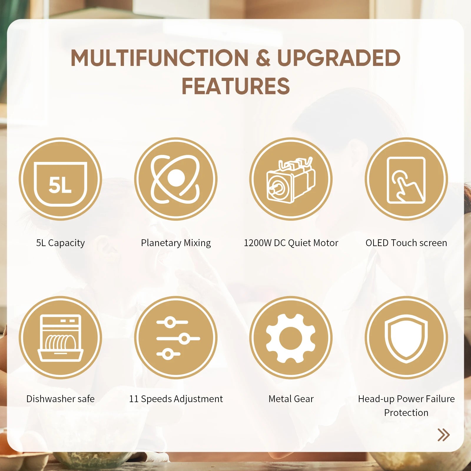 BioloMix Kitchen Food Stand Mixer 1200W 11 Speeds DC Motor Digital OLED Screen Electric Food Mixer with Dough Hook and Whisk