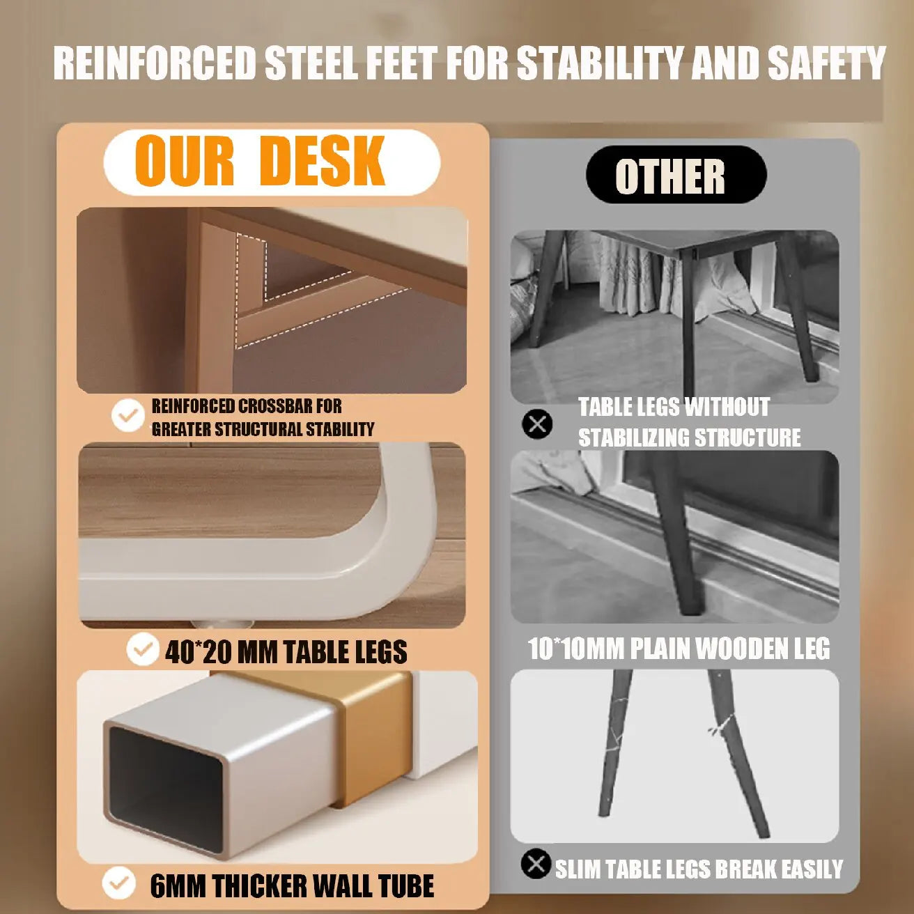 Specifications reflect a practical, no-frills desk that maximizes space without sacrificing function. Ideal for computing, writing, and study tasks in modern living spaces.