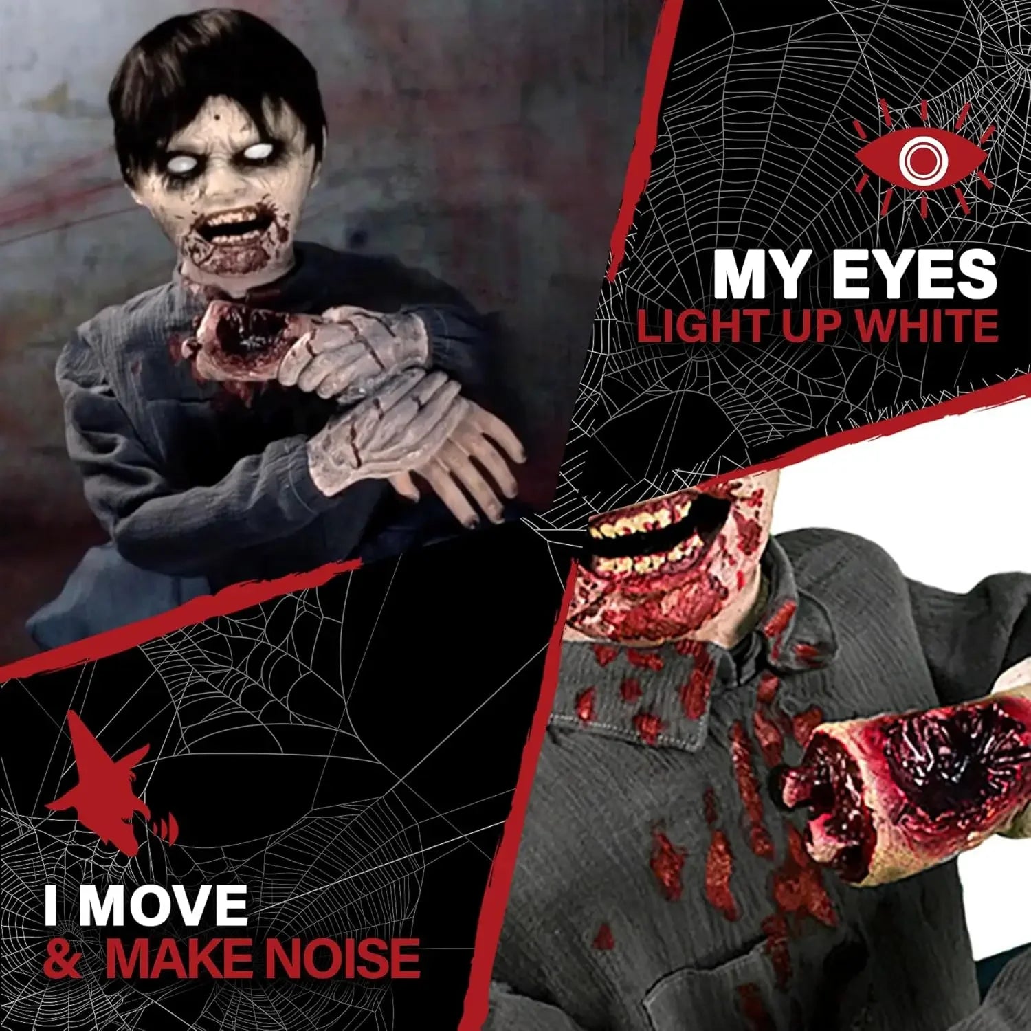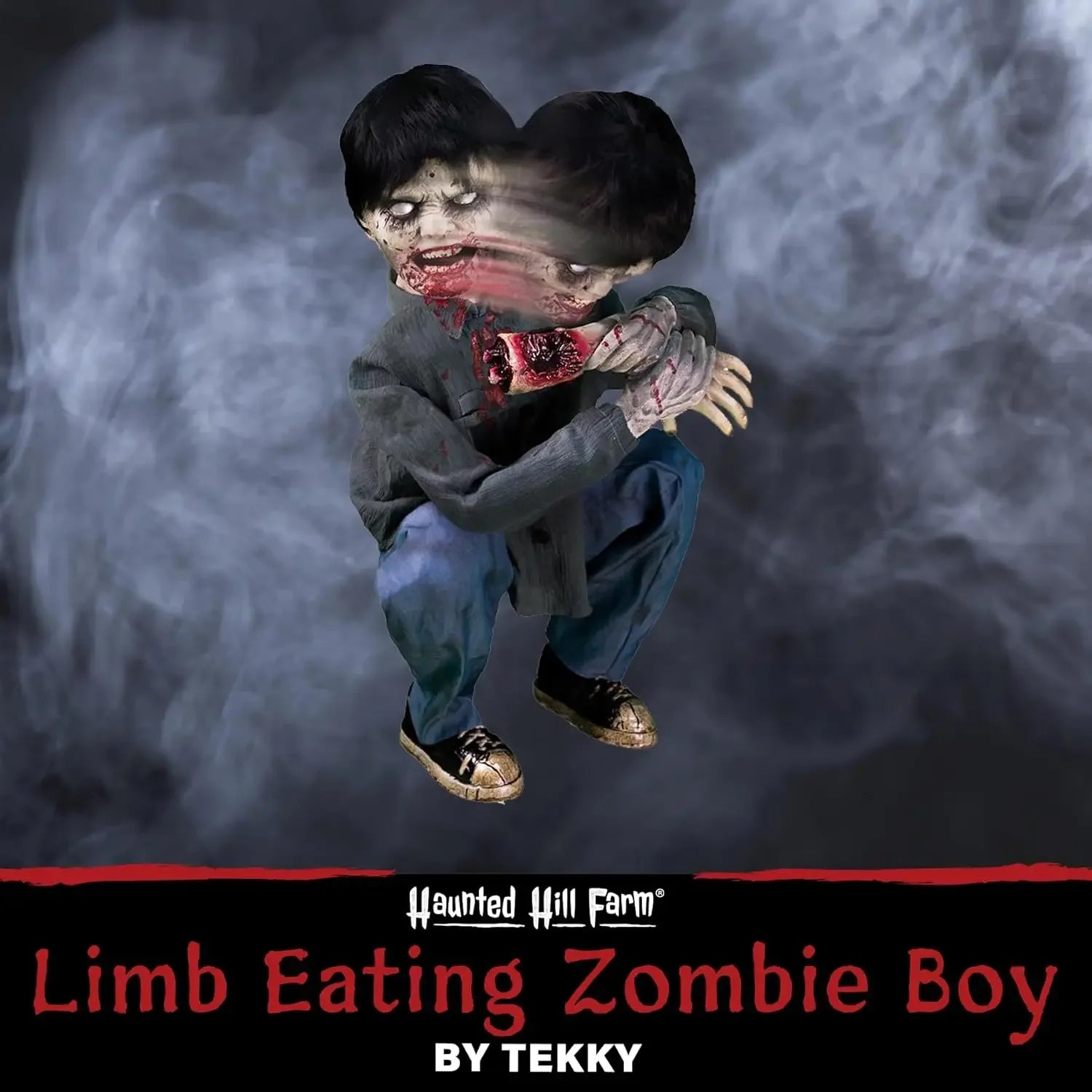Crouching Limb Eater Zombie Boy Halloween Animatronics Motion Activated Indoor Outdoor Display