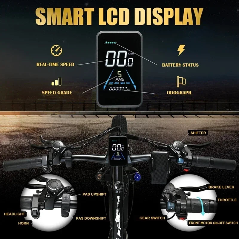 Smart LCD display that shows speed, battery status, pedal assist level, etc. |