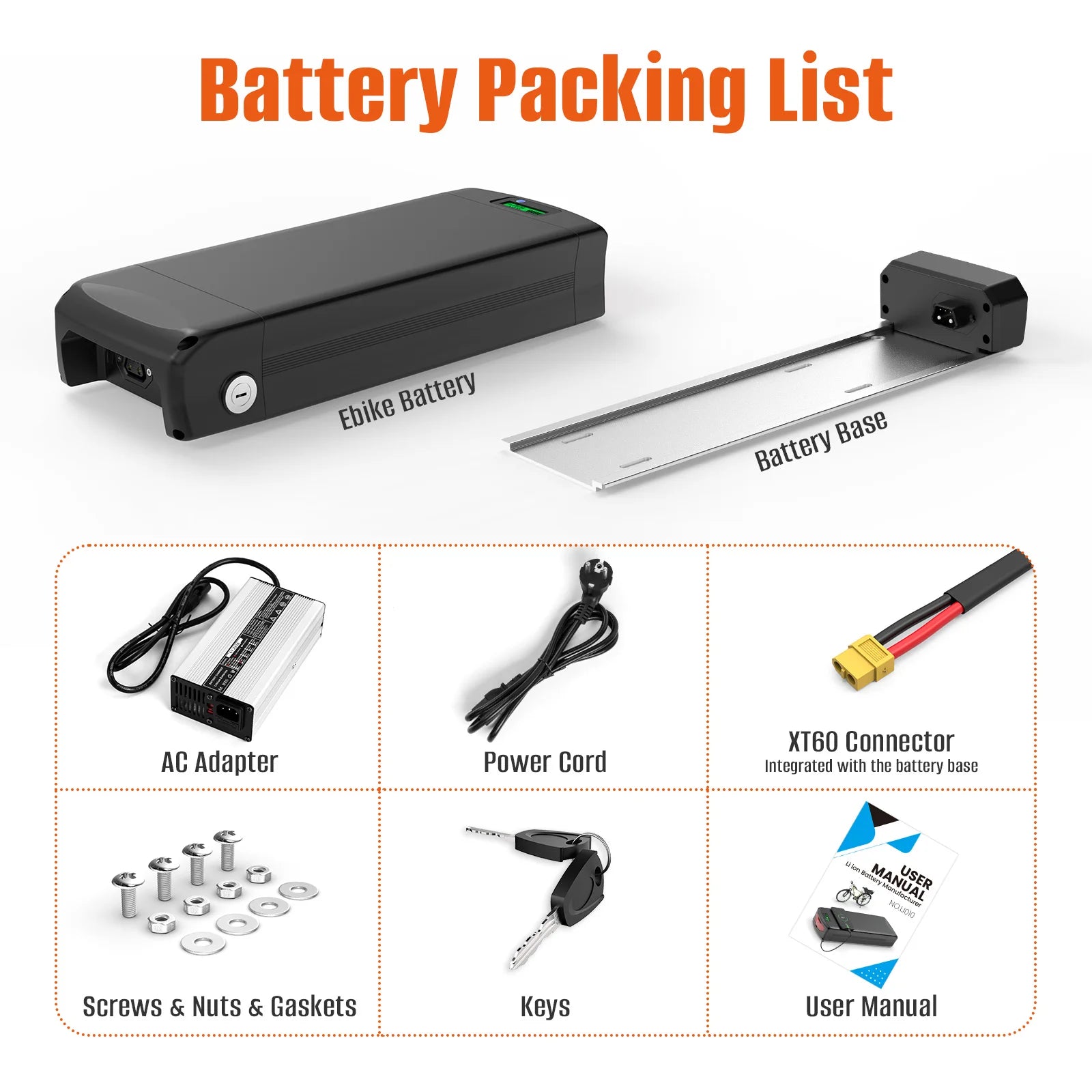 EU Stock Rear Rack Ebike Battery Li Ion 21700 Pack 36V 48V
