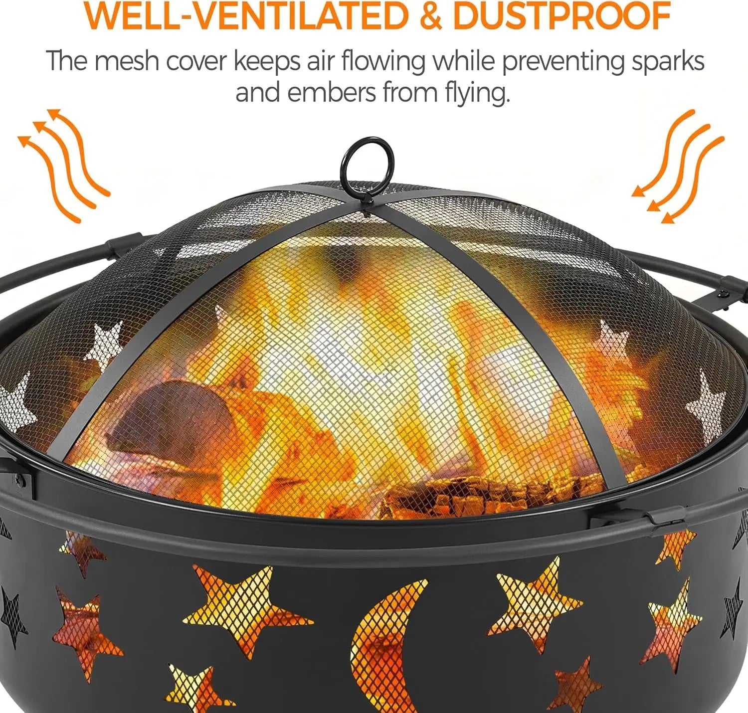 30 Inch Fire Pit Outdoor Wood Burning Spark Screen Poker