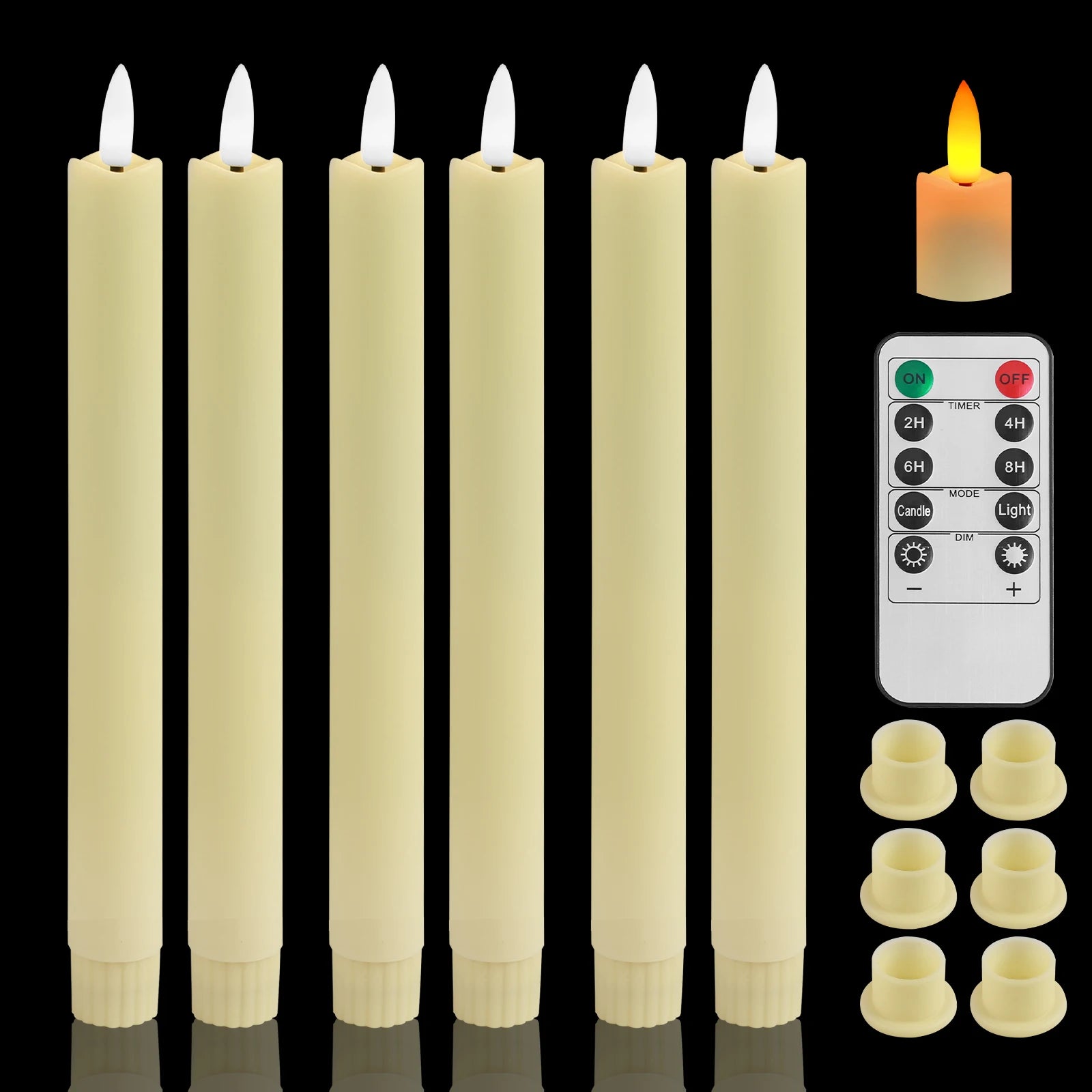 Flickering LED Taper Candles 6 Pack With Remote Flameless