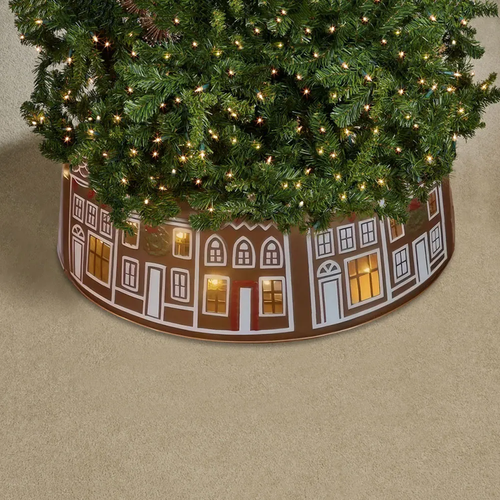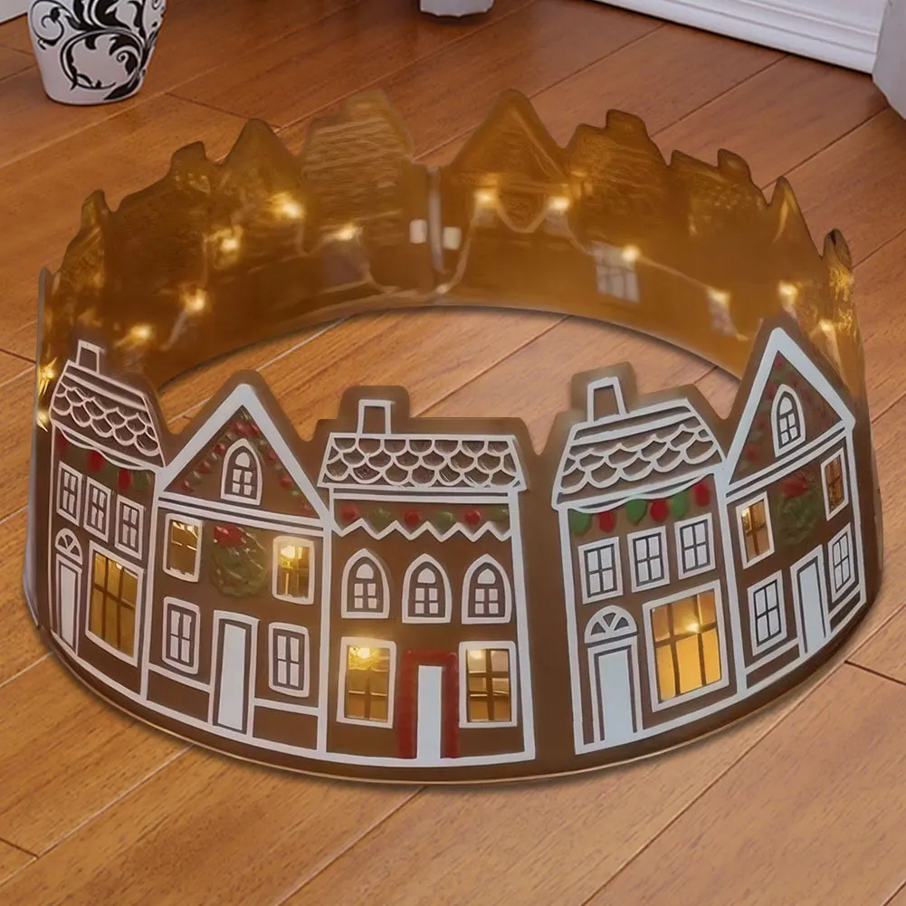 Gingerbread House Christmas Tree Collar with LED Lights Christmas Tree Skirt Christmas Tree Stand Base Cover for Holiday Decor
