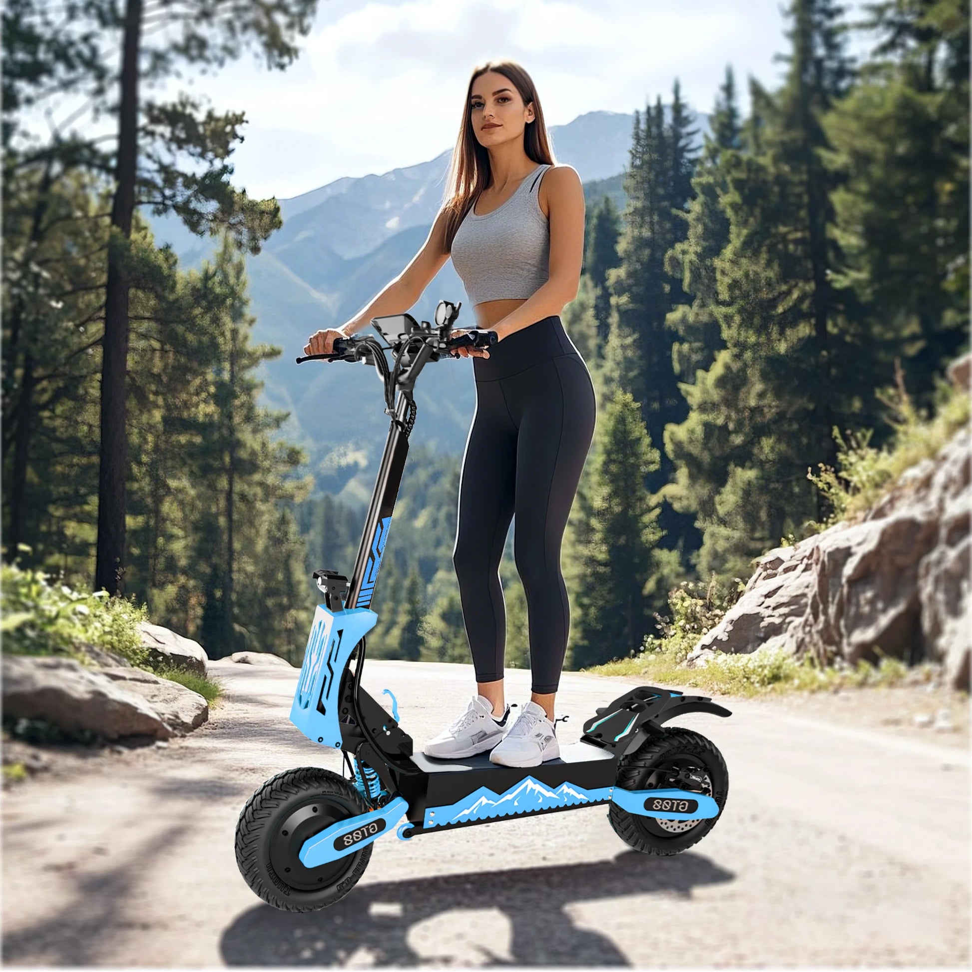 Dual 5600W motors push you forward with instant torque, propelling you to speeds exceeding 50 km/h (up to 46 mph in ideal conditions). Built for serious street and off-road use, the GT08 blends raw power with controlled handling so you can conquer hills, gravel, and dirt with confidence.
