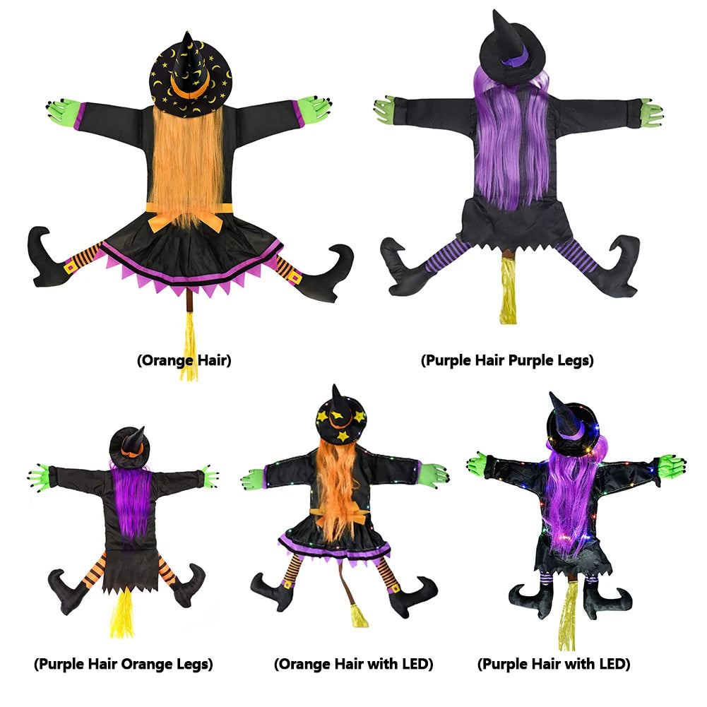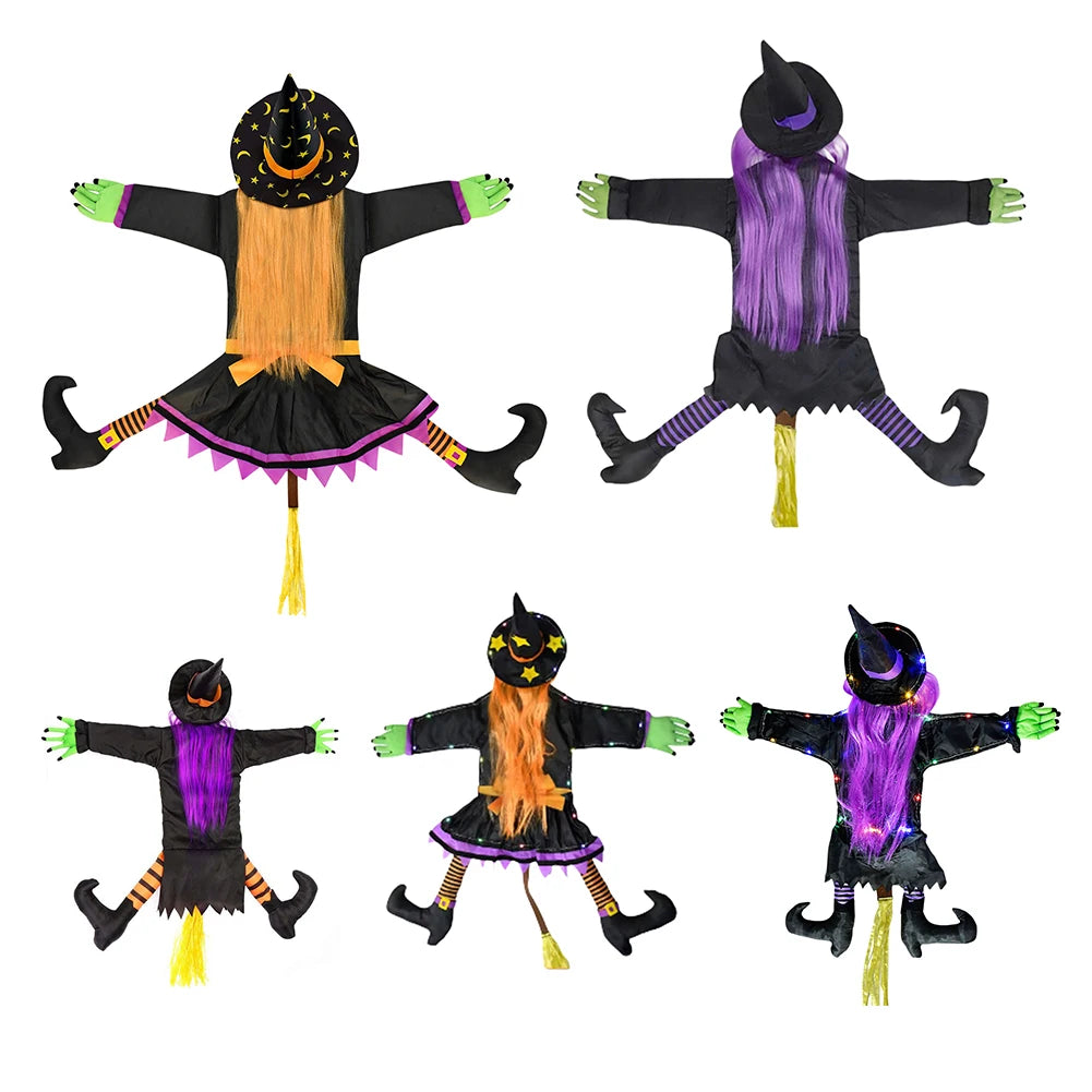 Halloween Crashing Witch Into Tree Outdoor Decoration With Light Flying Witch Lawn Patio Garden Decor