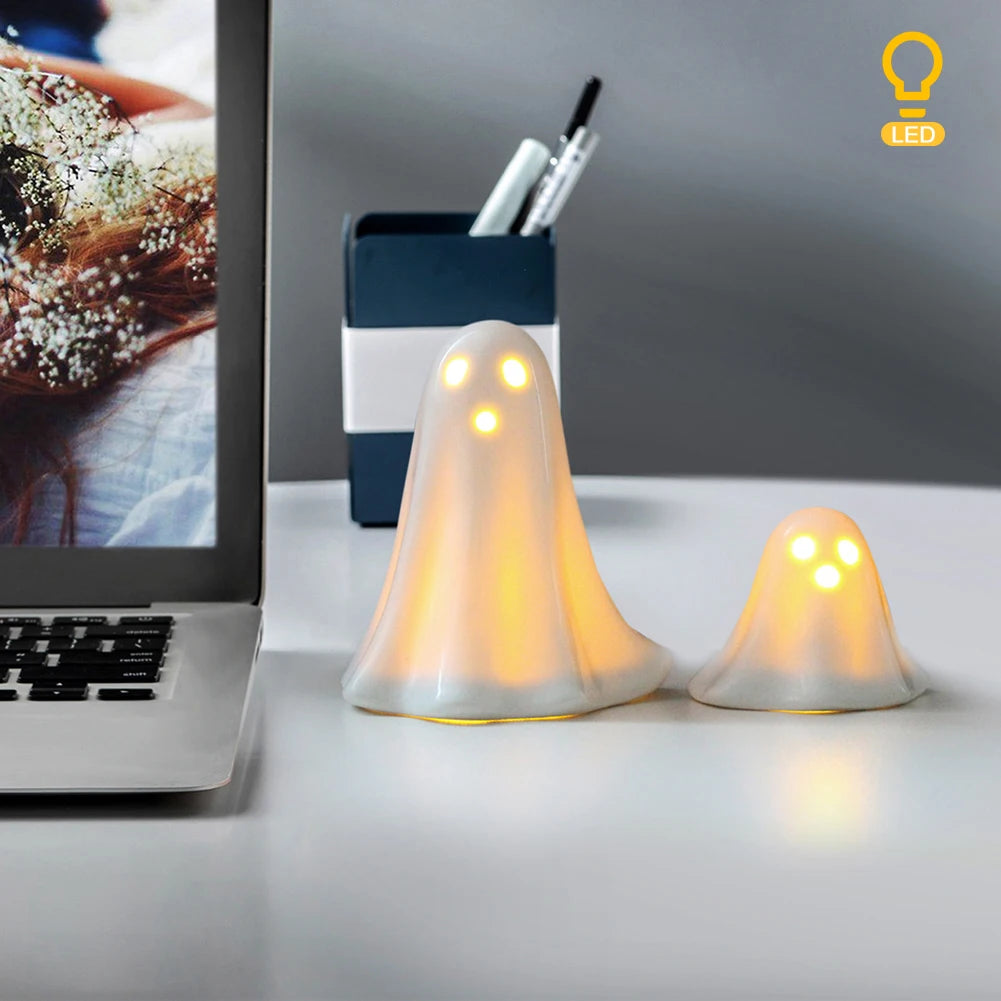 Halloween LED Light Up Ghost Decor Handmade Ceramic Ghost Sculpture Illuminated Desktop Decoration
