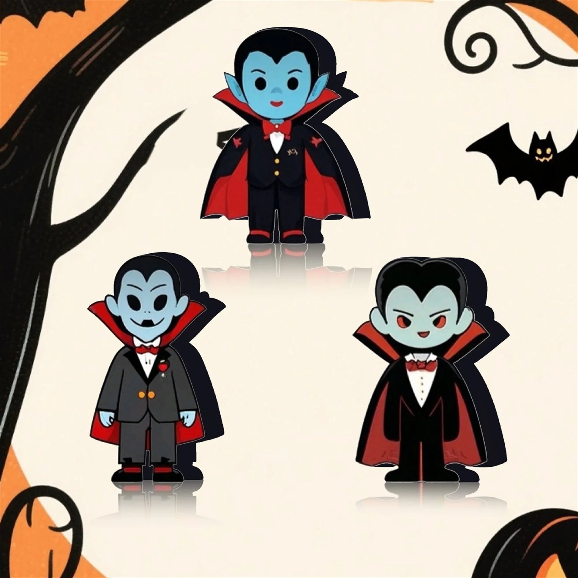 Each figurine features a witch's hat perched on a tiny broomstick, with a cape and vampire-inspired details that deliver a fun, seasonal touch without overwhelming your workspace.