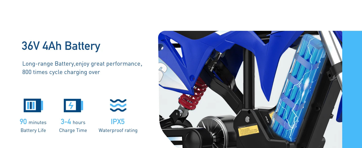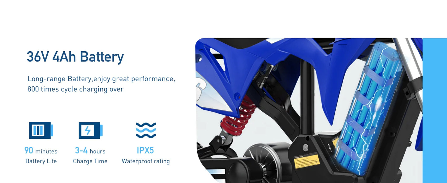 Hiboy brings a trusted name in kids’ electric ride-ons, blending safety with speed and style. The 36V system delivers reliable power, while the hand-picked materials and precision engineering ensure durability that families can rely on as young riders grow their skills. This dirt bike stands out with its metal frame, unisex design, and a three-speed setup that adapts to each child’s confidence level.