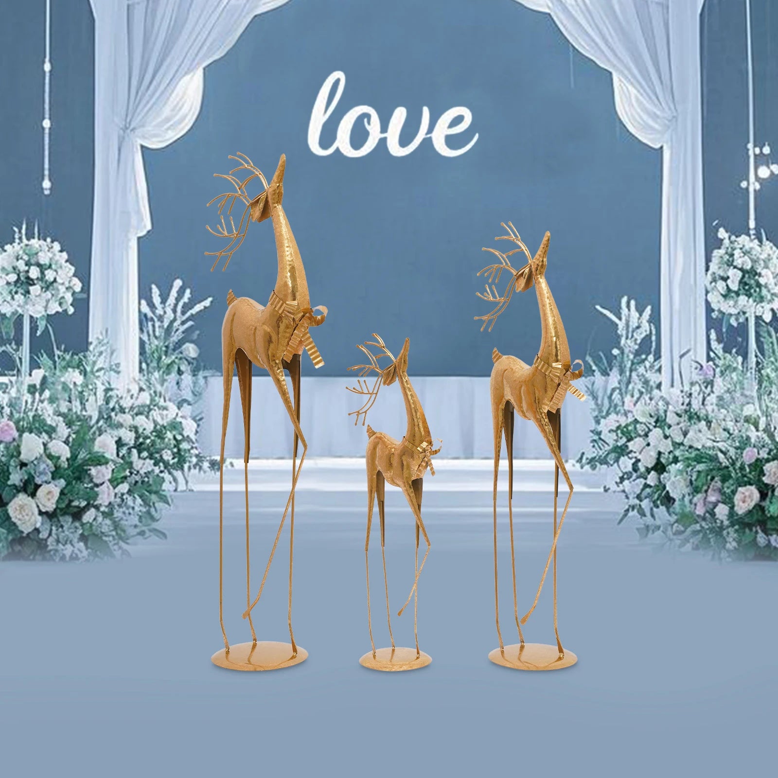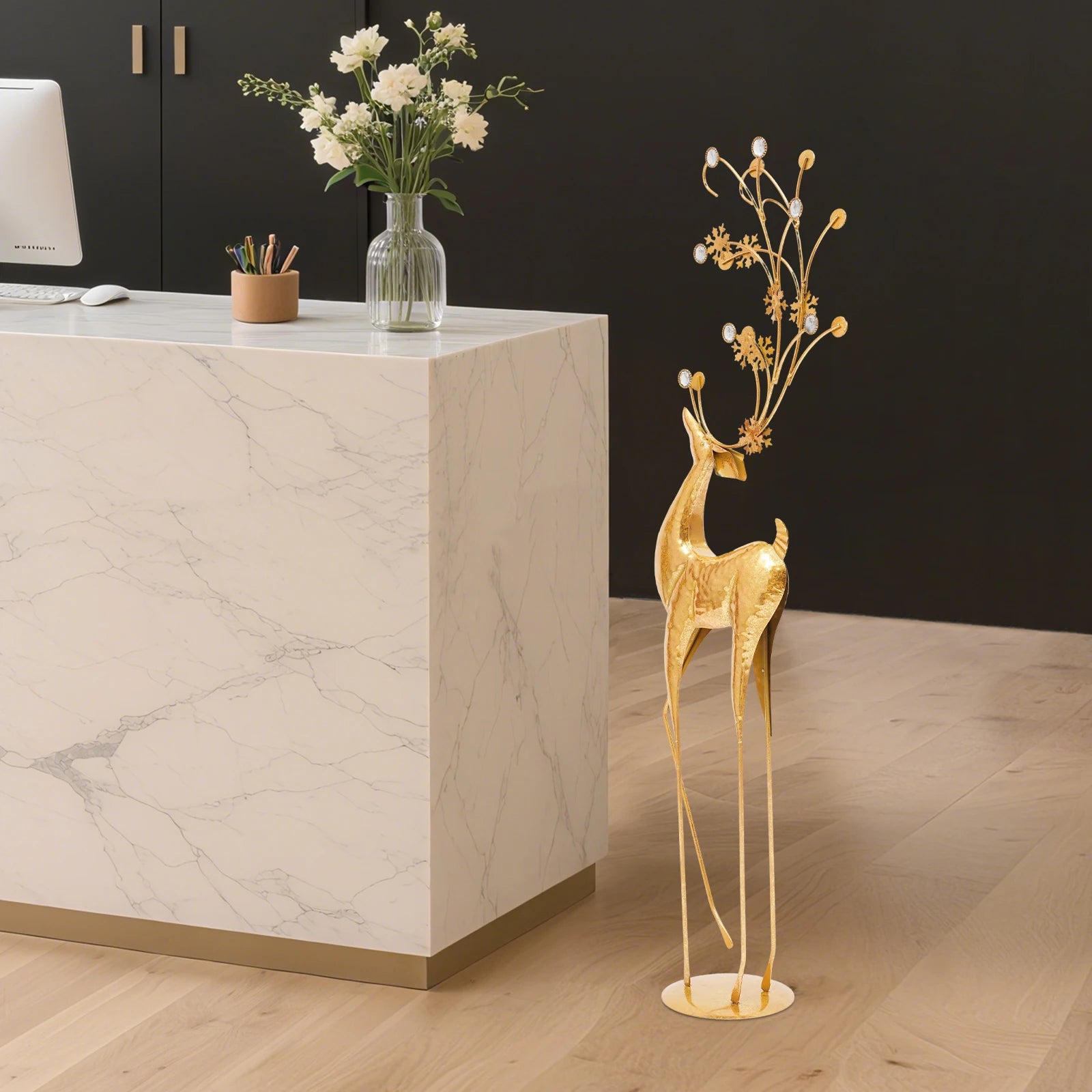 House Studio Gold Reindeer Statue—an elegant indoor Christmas decoration that brings a warm, festive glow to any room. This Christmas reindeer statue blends classic holiday charm with a modern metallic look, making it a versatile centerpiece for mantels, shelves, and tabletops.