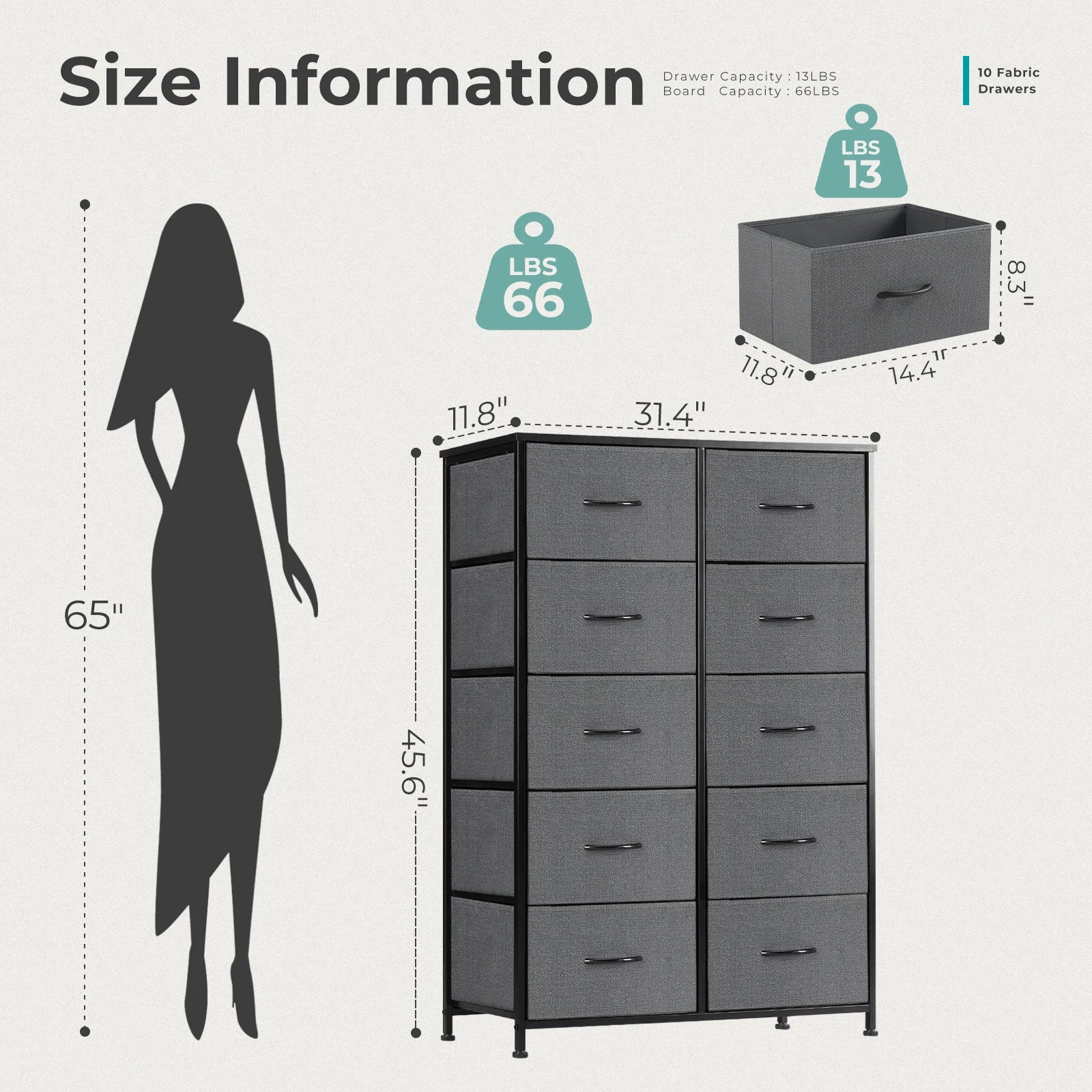 JHK Bedside Table With 10 Fabric Drawers Steel Frame