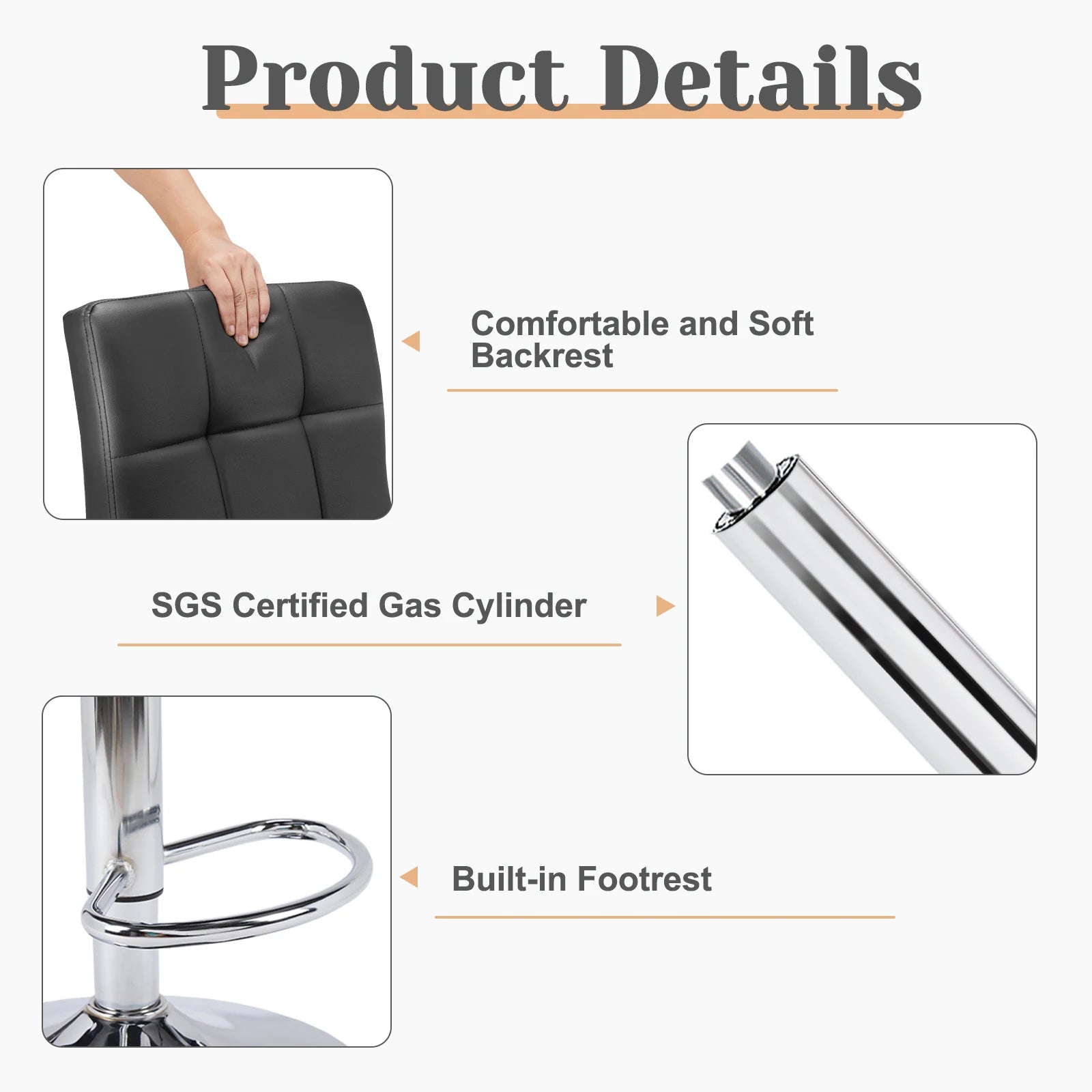 JHK PU Leather Bar Stools Set of 2,Upholstered Counter Height Bar Stools,SGS Certified Gas Gylinder Comfortbale Backrest