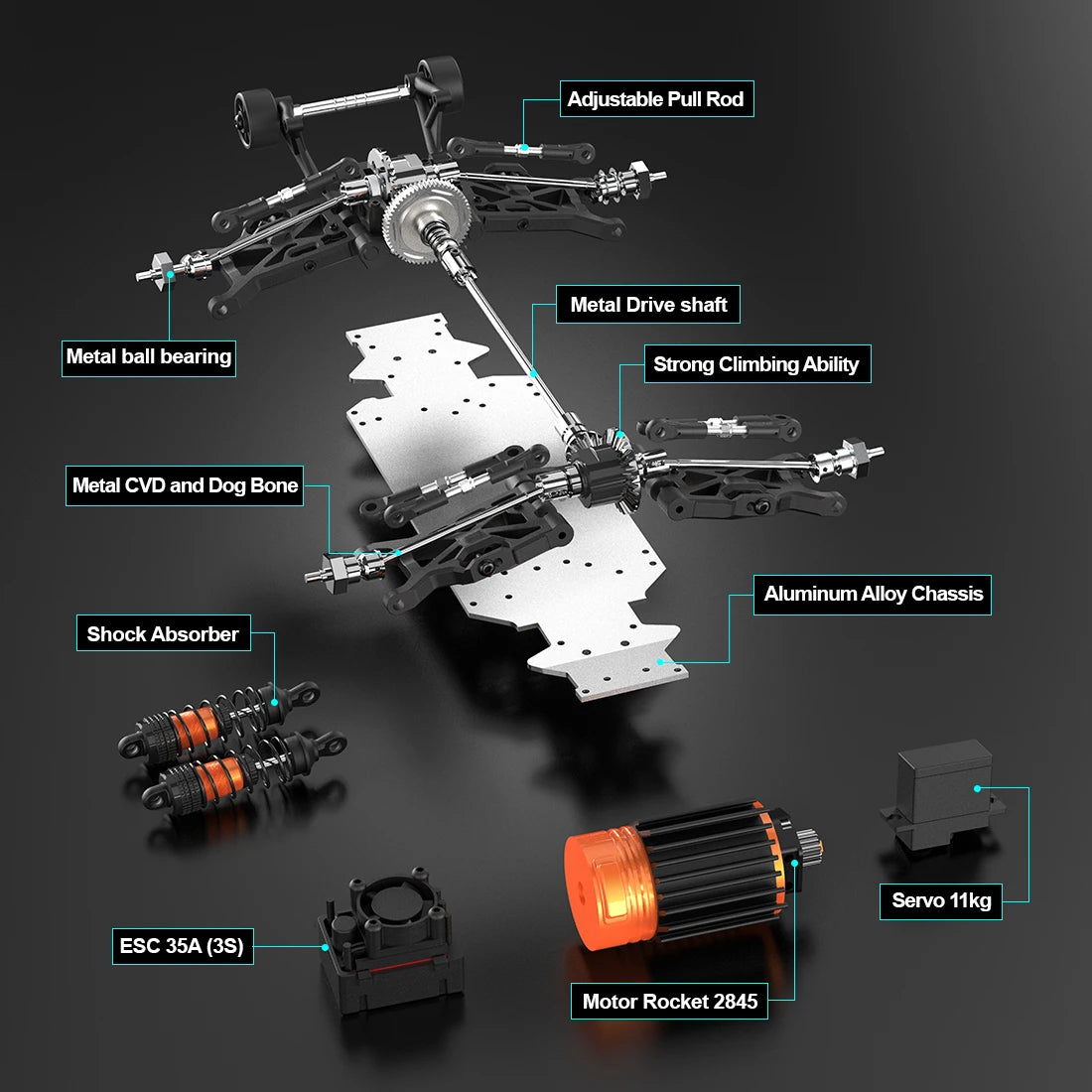 Built to stand up to casual bashing and weekend races, the Jiusi PT14R MT14R blends performance with reliability. This 1/14 scale brushless RC car is ideal for beginners upgrading from entry-level models and seasoned hobbyists seeking a compact, capable truck.