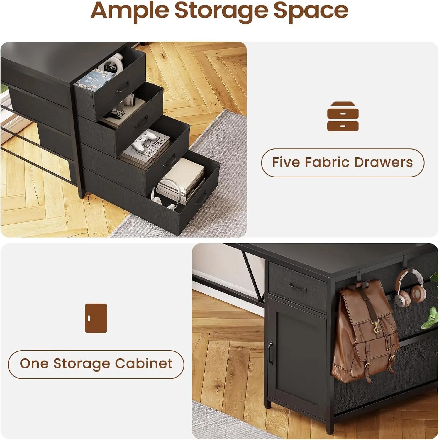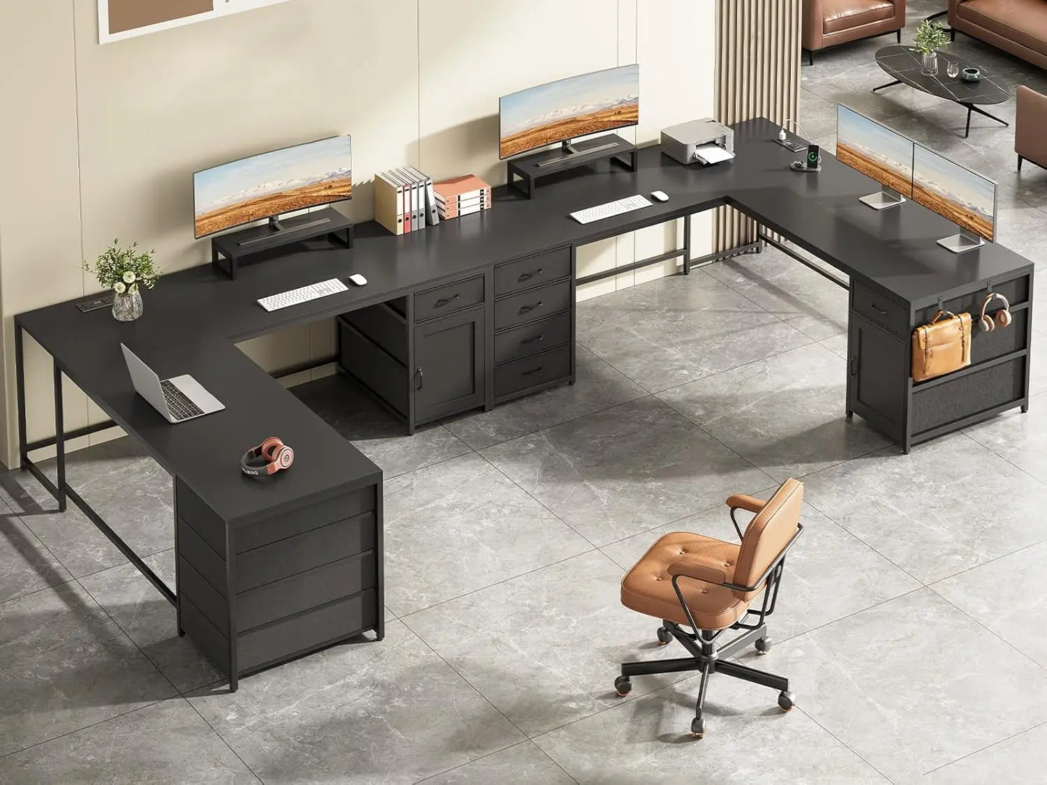 L Shaped Desk 63 Inch Computer Desk with 5 Drawers Outlet delivers a spacious, organized workspace built for home offices and compact rooms. The 63-inch length and corner-friendly L shape create expansive surface area while preserving floor space.