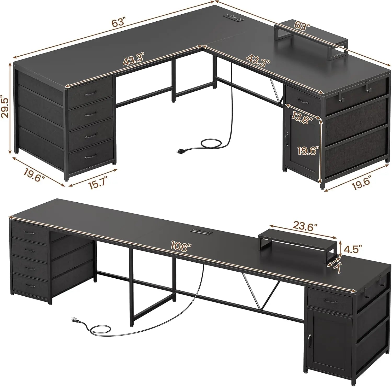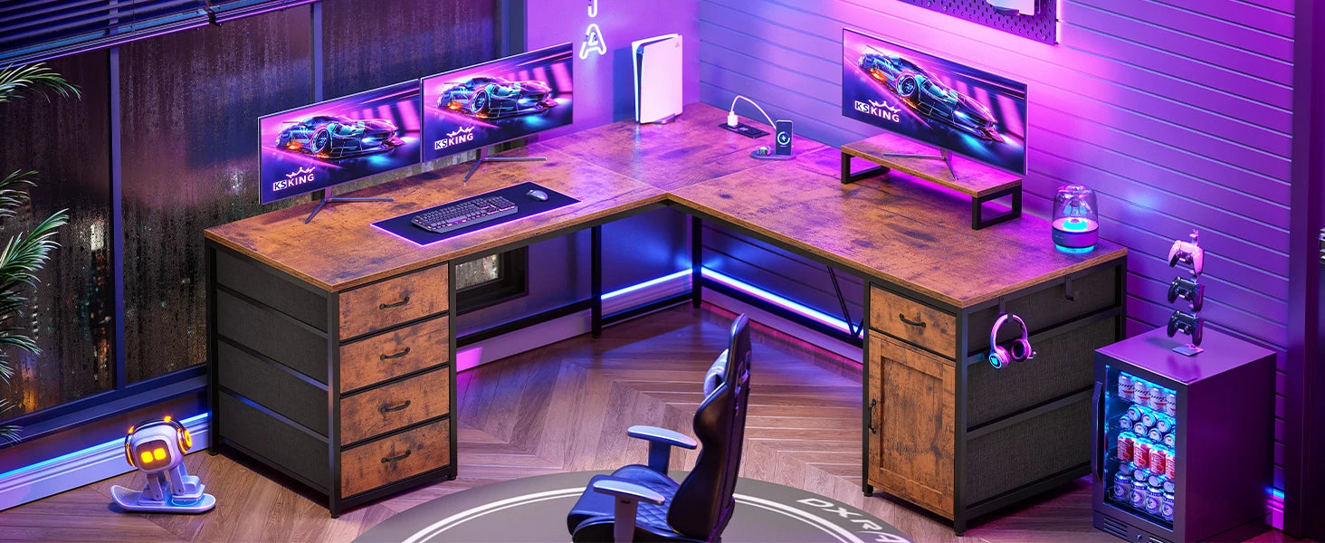 - L-shaped corner design: Efficiently fits into a room corner, freeing up central floor space while maximizing your footprint for productivity.
