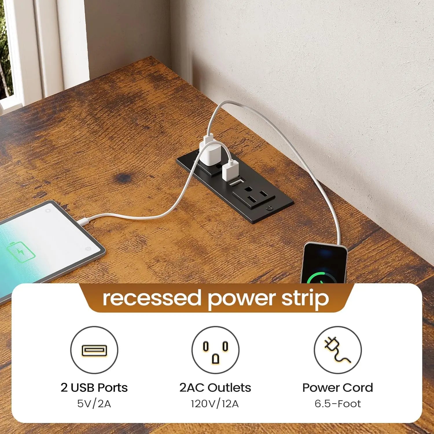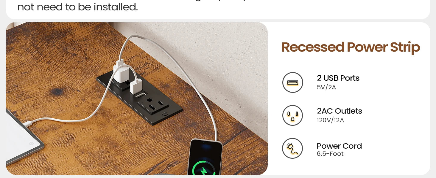 - Built-in power outlet: Convenient access for charging devices, reducing cable clutter and keeping cords within reach as you work.