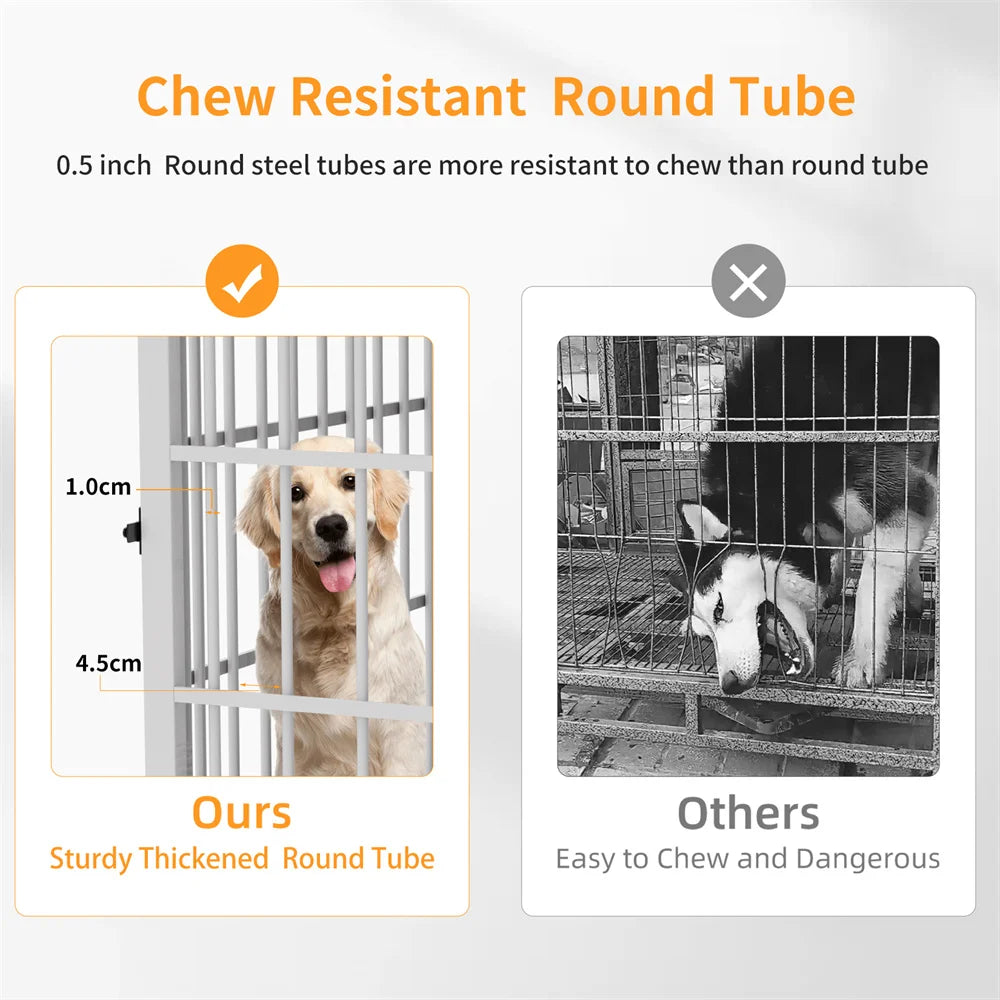Materials and safety matter. The construction combines 40% metal iron for a strong, resilient frame, 50% MDF for solid panels, and 10% PE trim for smooth, pet-friendly edges. The finish is free from harmful chemicals, giving peace of mind to families with curious dogs and young children.