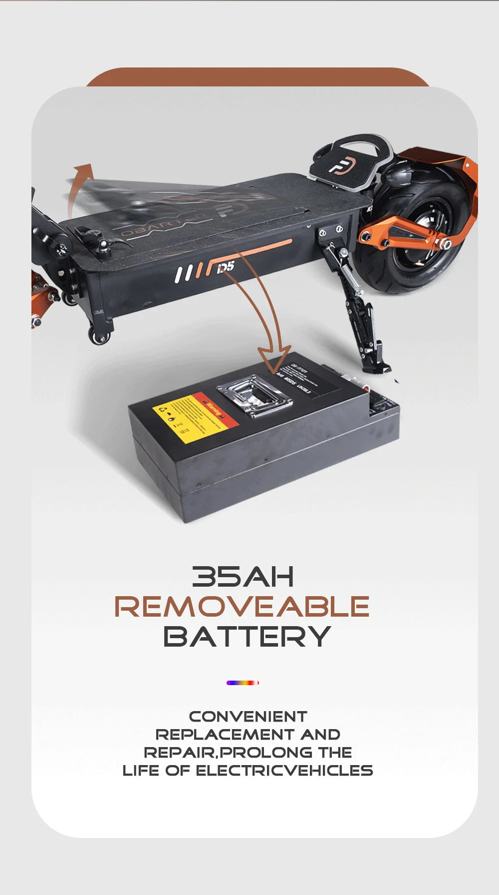 With a mighty 5000W motor and a robust 72V system, the D5 delivers brisk acceleration and steady highway-like performance, so commuting, campus travel, or weekend rides become a thrill rather than a chore.
