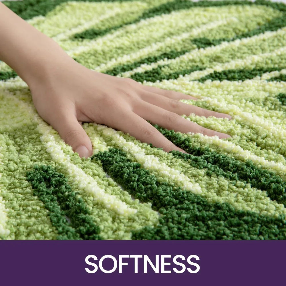 Monstera Leaf Bath Mat — Non Slip Green Shower Floor Mat