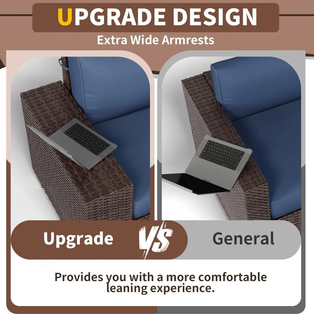 Outdoor Patio Furniture Set 8 Inch Armrest Sectional Rattan Sofa Coffee Table