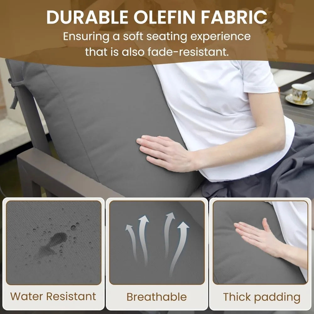 - 6.5" thick cushions: extra-soft, supportive padding for extended outdoor lounging.