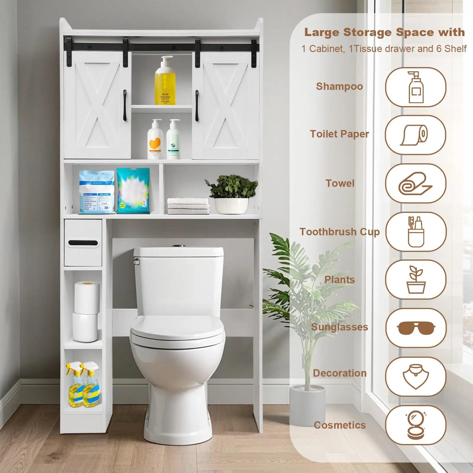 Meet the Over The Toilet Storage Cabinet with 2 Doors and built-in toilet paper holder from HiMISSH. This compact, space-saving unit is designed to bring organized storage directly above your toilet, keeping essentials within reach while freeing up vanity space.