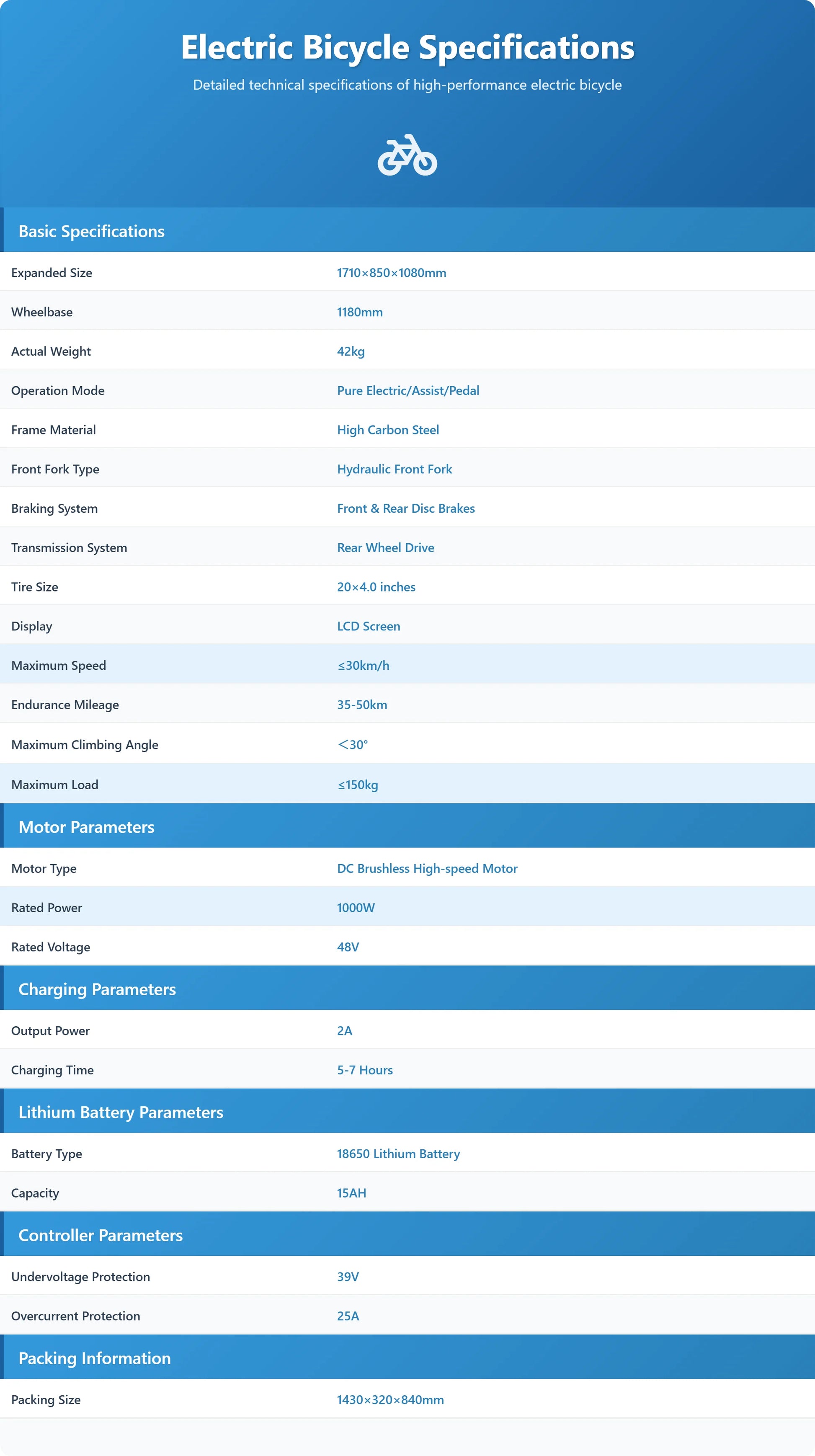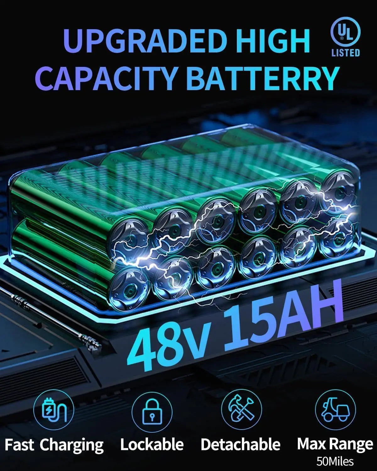 - Battery: 48V, 15Ah for solid power reserve