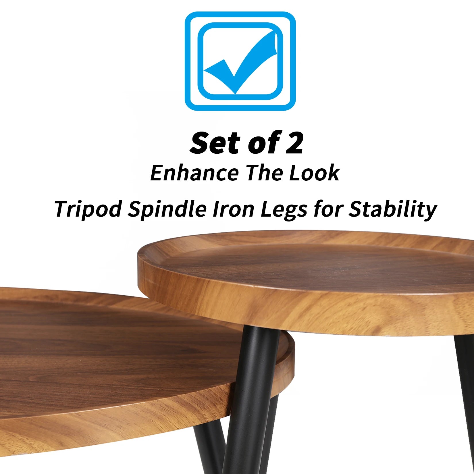 Rustic Round Nesting Coffee Tables Set Of 2 With Wood Tops