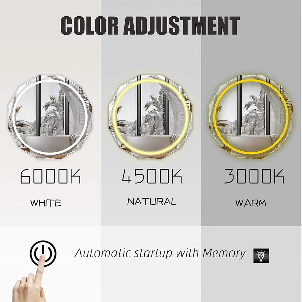 Experience a modern upgrade for your bathroom with the Round LED Bathroom Mirror Beveled Edge Mount Anti Fog Silver, from Comfy Cottage Shop. This round mirror blends sleek design with practical features to brighten your space while staying easy to maintain.